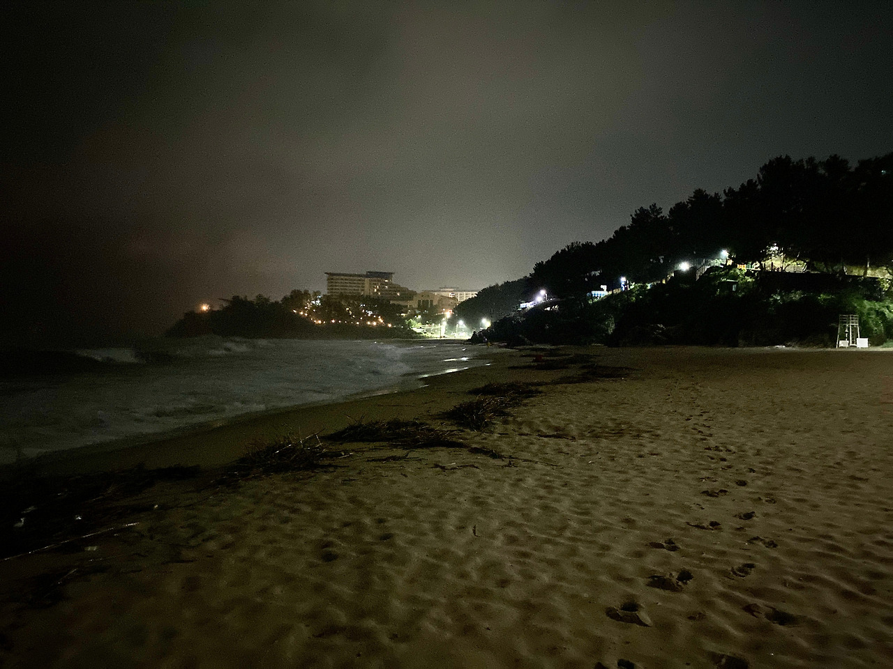역시 추암해변에서 아침을 만났다. 지난밤 내린 많은 비와 바람으로 아침 파도는 엄청나게 거칠다. 넓은 백사장은 밀려온 쓰레기로 덮였다. 모래 백사장 중앙 넘어까지 삼킬 듯 파도가 밀려온다. 오늘은 백사장 시작 부분에서 가볍게 걷고 들어가야겠다. 파도가 삼킬까 무섭기도 하다. 기온까지 내려가 춥다.