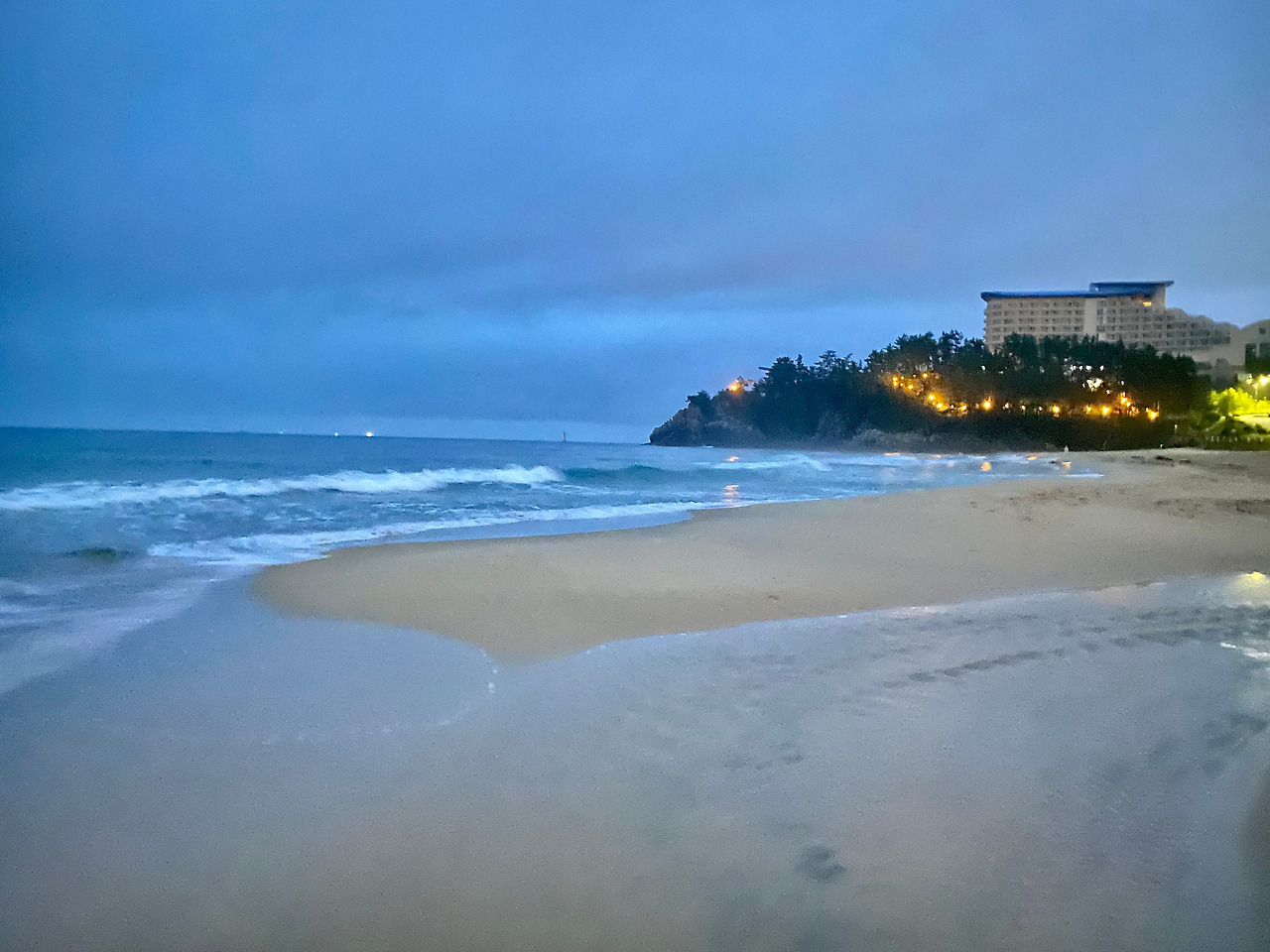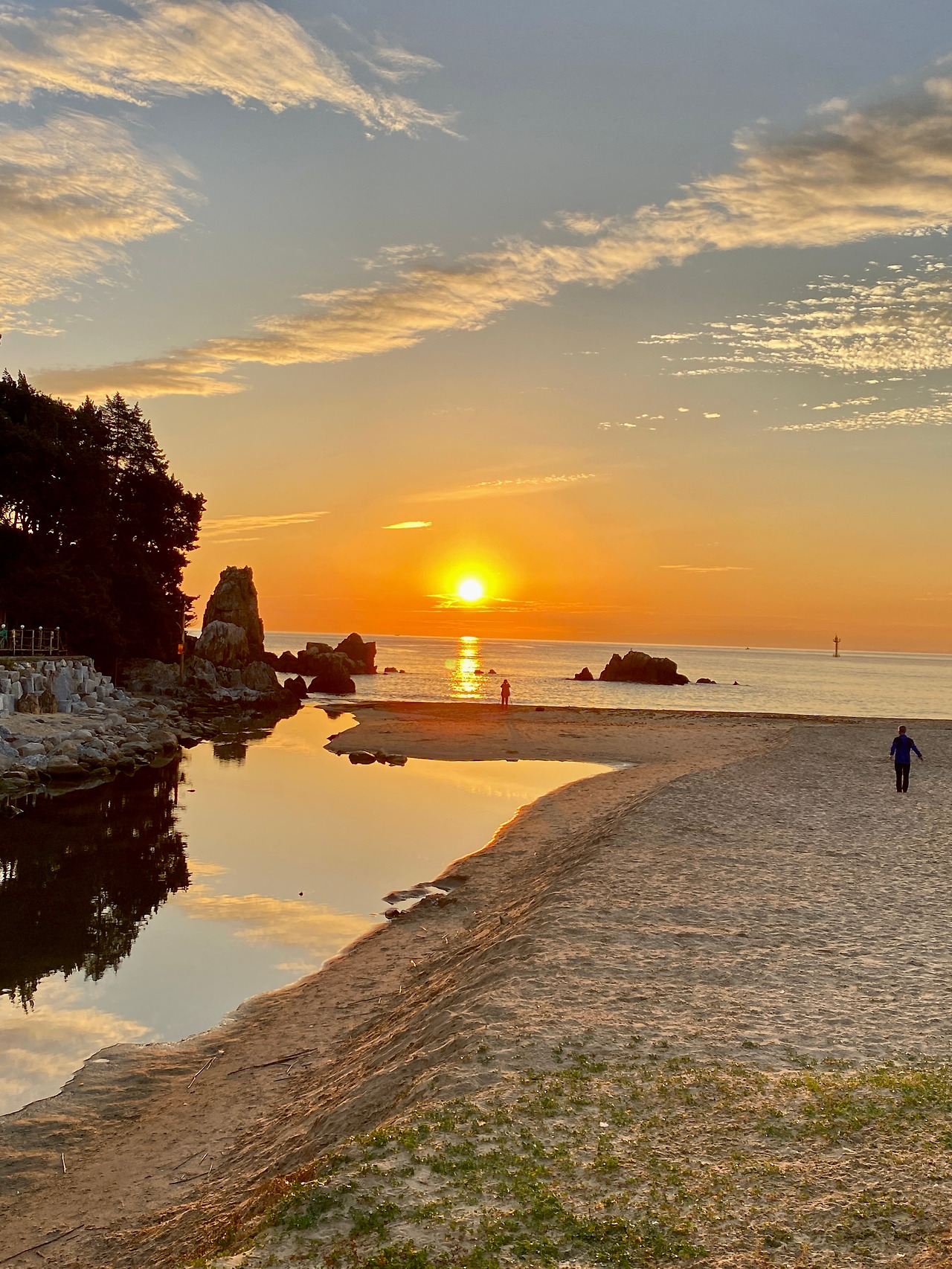 자연이 주는 추암해변의 새벽축제를 만났다. 파도사이로 만들어진 찰나의 추암 모래섬이다. 둥글게 둥글게 때로는 정사각, 때로는 직사각, 원형의 모래섬은 아름답다. 모래섬은 순간순간 새로운 모양으로 추암의 아침을 밝힌다. 한참을 바라보다 모래섬에 올랐다. 파도에 밀려오는 바닷물은 따뜻하기까지 하다. 발을 돌려 남쪽 어디선가 합수되는 차가운 민물이 만나는 곳에 필자는 서있다.