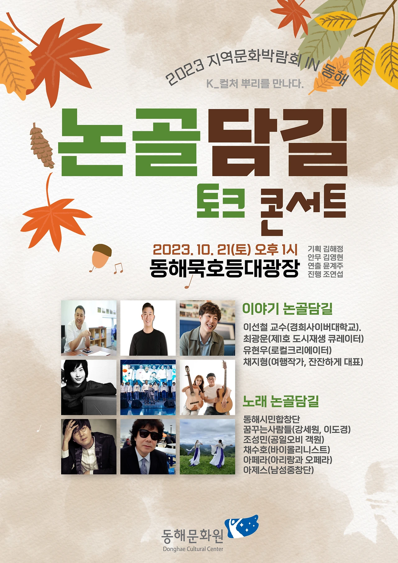 20일 저녁 7시 개막공연은 <K_컬처의 뿌리, 소멸되지 않는 지역문화 주제의 주제공연>으로 진행된다. 다음날 21일 저녁 메인 프로그램도 <지역학과 이야기를 담은 콘셉트공연>이 진행된다. 아쉽게도 인기가수는 없다. 지역 사람, 이야기와 생활문화가 무대의 주인공이다.