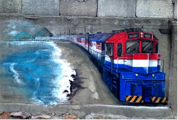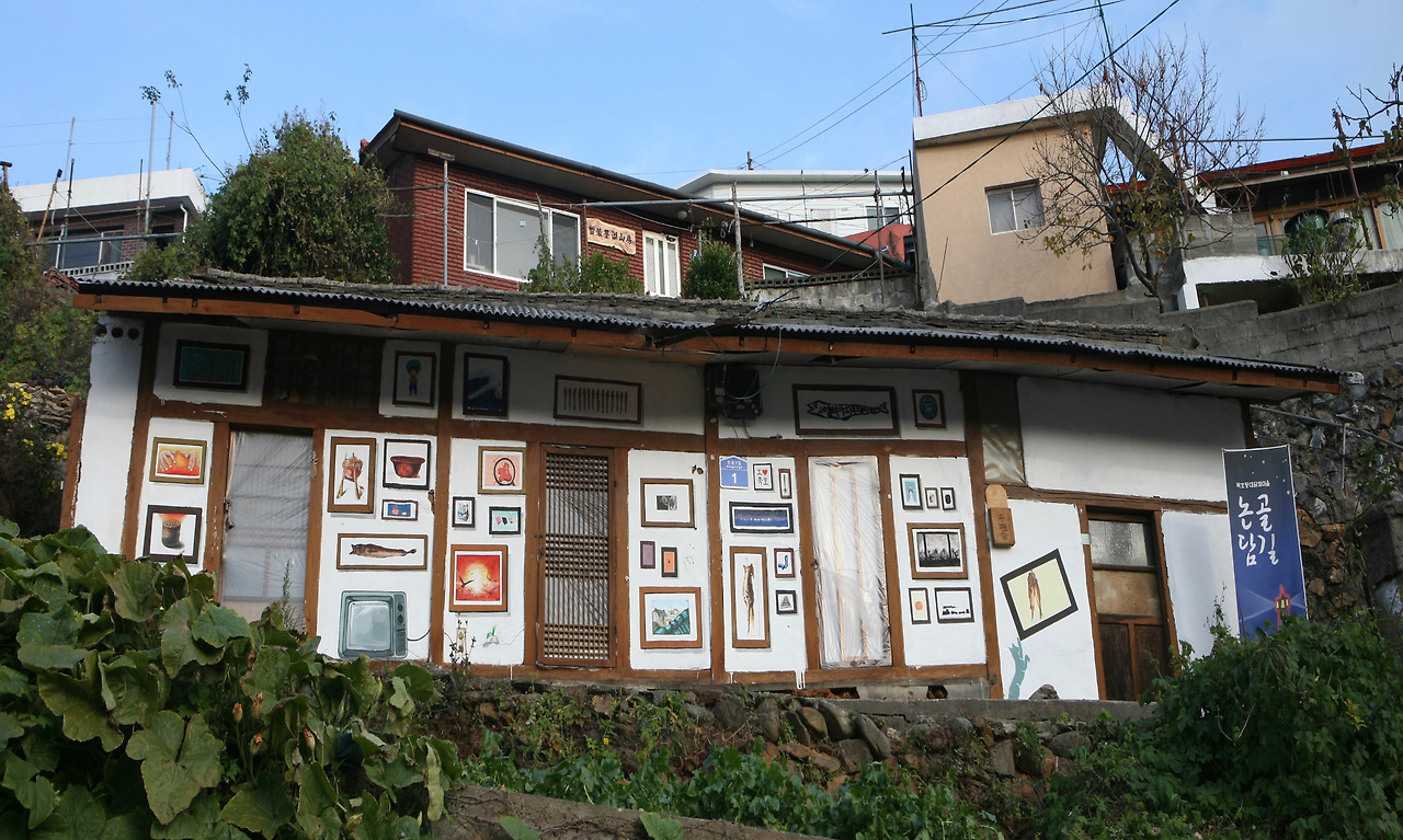 폐가를 활용해 만든 논골담길 첫 작품이며 묵호를 한눈에 볼 수 있는 ‘논골담길 갤러리’입니다. 논골 3길 입구 좌측 언덕에 위치한 갤러리 원형이죠. 재미난 웃지 못할 일화가 기억납니다. 처음 벽화를 시작할 때 집주인을 찾아 허락을 받고 작업을 시작한 장소인데 여행자가 늘어난다는 소문을 들었는지 당시 별거 중이던 사모님이 나타나 사용료를 달라는 게 아닌가 … 참 황당했습니다. 당시 필자는 절차에 따라 진행했다고 강력하게 답변을 했더니 민원을 들고 시장실로 또 방문해 건의하자 당시 시장은 시에서 매입을 하고 일하는데 지장이 없도록 도와 주라는 지시가 내려지면서 민원이 해결된 사례도 있습니다.