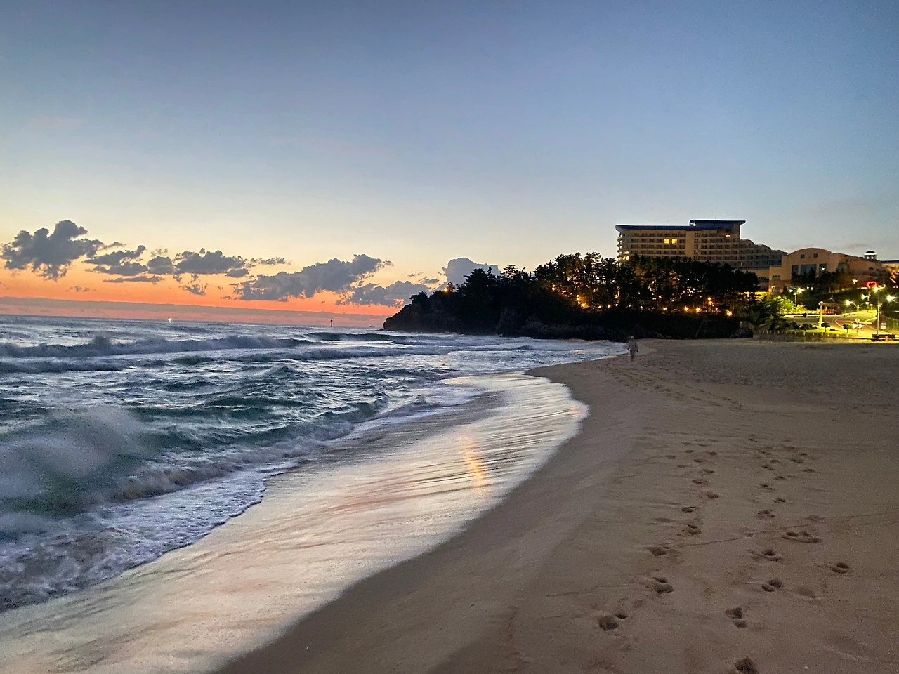 필자가 선택한 해변 맨발 걷기 장소는 약 3곳이다. 평일 아침은 집에서 가까운 곳 동해 남부 지역이며 차로 10분 거리의 추암해변이다. 조선시대 기우제 등을 지냈다는 강한 기가 흐르는 역사적인 장소며 해변이 아담하고 여성적이며 모래도 좋고 걷기좋은 곳이다. 특히 새벽은 사람이 없어 입구 주차장까지 차를 주차할 수 있어 좋다. 참고로 추암은 낮시간 걷기는 외부 주차장을 이용해야 한다. 주말과 휴일은 새벽은 일출요가 웰니스 클럽 회원들과 망상해변을 걷는다. 망상오토캠핑리조트 끝쪽 한옥마을 앞 주차장에 주차하고 해변 좌측에서 우측 끝까지 한 번만 왕복해도 한 시간이다. 망상해변은 워낙 백사장이 넓어 망상명사십리로 불리며 우리나라에서 보기 드문 해변으로 모래, 백사장, 파도, 수심 등 해변이 가장 우수한 남성적인 해변이다. 주말은 하루 2회 걷기가 많은데 오후 걷기는 최근 시에서 새롭게 조성한 행복한섬 해변을 즐겨 걷는다.