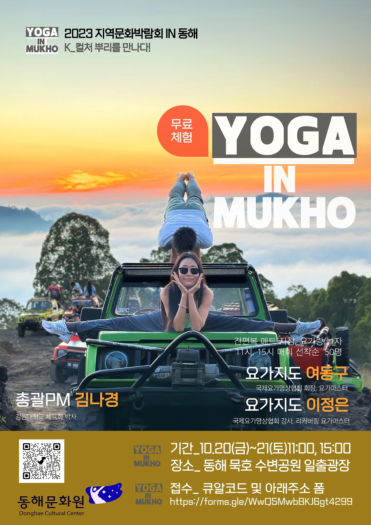 또한 10월 20일부터 23일까지 △지역학 학술 콘퍼런스를 비롯해 △지역문화 PLAY 그라운드 △Food Truck △논골담길 소풍! 이야기를 팝니다 △요가 in 무코, 요가랑 놀자 △동해비치마켓 등 여러 체험 프로그램을 진행한다. 이 중 ‘요가 in 무코, 요가랑 놀자’와 ‘논골담길 소풍(투어&음악회)’은 공식 누리집에서 신청 후 참여할 수 있다.