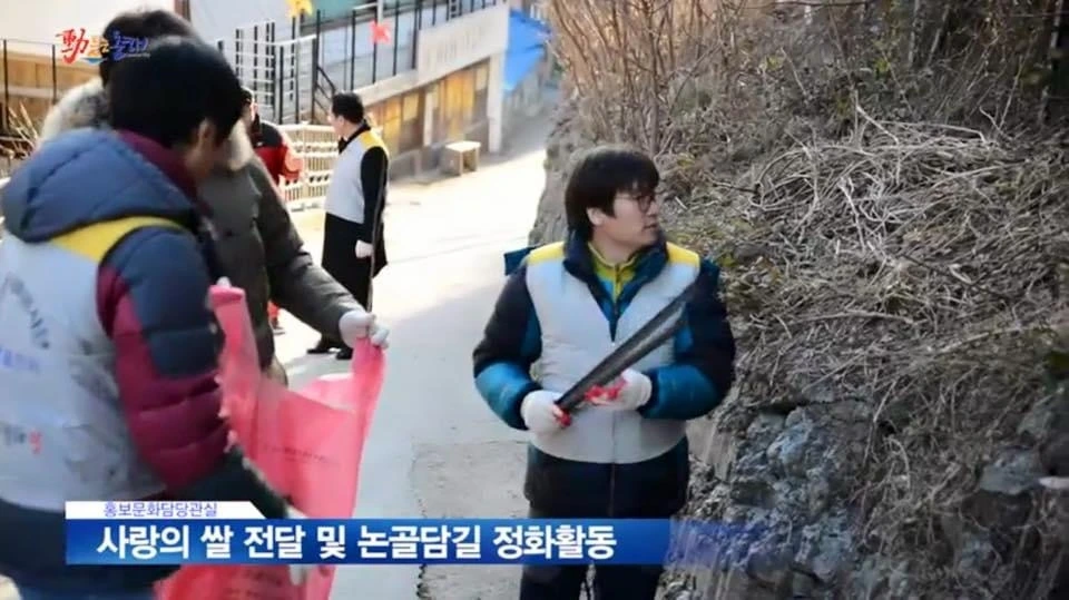 평소에는 각자 기수별로 봉사활동을 하지만 논골담길은 주말 휴일을 활용해 연합 활동 봉사도 해 왔다. 소식을 듣고 봉사는 자발적이어야만 합니다. 구호를 외치며 어느 날 관내 모 공기업 임직원들이 새해 첫날 첫출발을 논골담길과 하고 싶다고 의미 있는 제안을 해 왔다. 어떤 일을 하고 싶나 했더니 무슨 일이 든 좋으니 함께하자 는 의견이었다. 회사는 그해 화려한 직장 새해 잔치를 생략하고 약속대로 논골담길을 찾았다. 이날 그들은 <논골담길을 방문해 주셔서 감사합니다. 저희가 사람 냄새나고 깨끗한 논골담길을 약속합니다. 많이 와 주세요> 캠페인 홍보활동과 환경정화활동이다. 청소년봉사단 어시스트, 동해시가족봉사단, 한국동서발전 동해바이오화력본부(본부장 박윤옥) 봉사단 등의 따뜻한 손길이 있었기에 오늘날 논골담길이 존재했다고 본다.