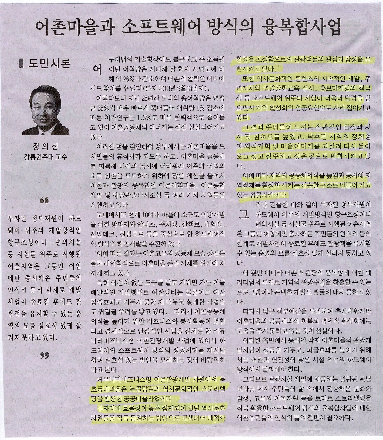 <강릉원주대 정의선교수 기고문>