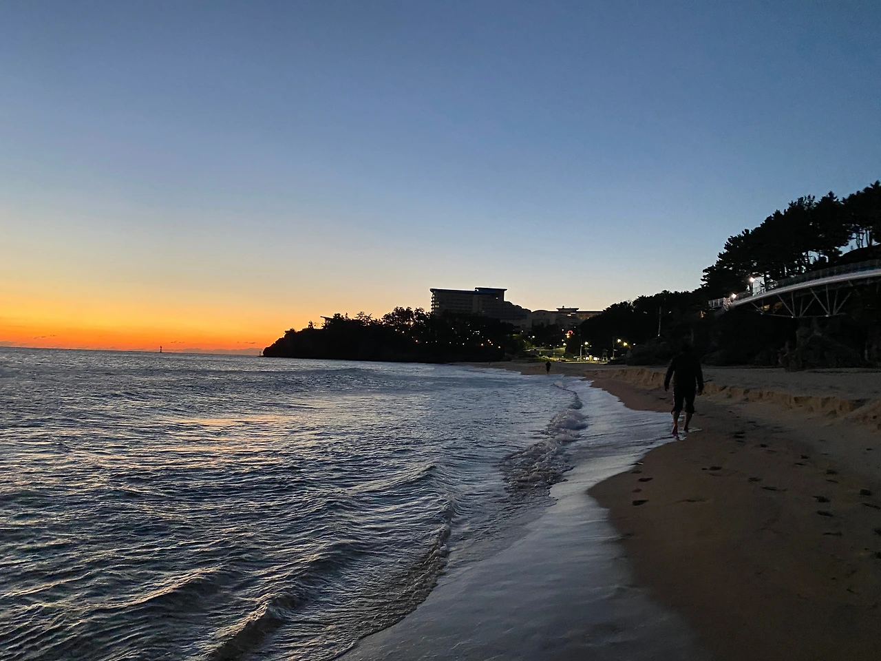 해변 맨발 걷기 55일째, 아침의 나라 동해 추암에서 동해의 아침을 만났다. 기온은 어제보다 4-5도 내려간 영상 4도로 본격 추위가 시작되는 느낌이다. 추위의 스트레스를 긍정적으로 즐기고 에너지를 충전하자. 관광객으로 보이는 부부가 큰 소리로 나를 향해 외친다.