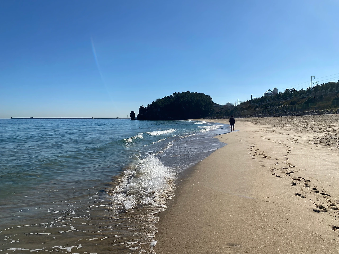 아침 걷기와는 달리 체온의 변화가 빠르다. 내리쬐는 태양으로 한낮 해변은 아직 여름이다. 한 번을 왕복하기 전에 이미 온몸은 땀으로 범벅이다. 개인적으로 땀이 많은 편이라 운동에서 불편한 점이 한둘이 아니다. 걷기도 마찬가지다. 혹시 많이 걷기의 효과로 땀도 줄지 않을까? 기대도 하면서 오늘도 걷는다. 낮 시간 걷기는 직장인은 가까운 곳에 비다나 산이 있어도 보통 노력으로는 쉽지 않다. 철저한 맨발 걷기의 믿음과 자연의 위대함을 접하는 개인의 의지가 중요하다.