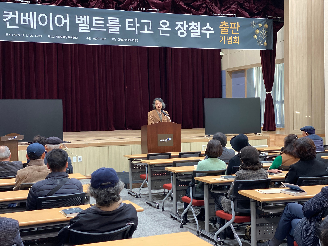 글로 고향을 지킨 소설가 홍구보 장편소설 ‘컨베이어 벨트를 타고 온 장철수’ 출판기념회가 지난 5일 오후 2시 동해문화원 대강당에서 성황리에 개최됐다. 출판회는 홍구보(본명 홍준식_남, 70) 소설가, 김영하 전 성균관대학교 교수, 이순원 소설가, 김창균 강원작가회의 회장, 이동호 동해시의회 의장, 오종식 동해문화원장, 최재석 강원도의원, 이창수 동해시의회 의원, 정연수 동해문화관광재단 대표이사를 비롯한 작가, 시인, 등 100여 명이 참석한 가운데, 진행되었다.