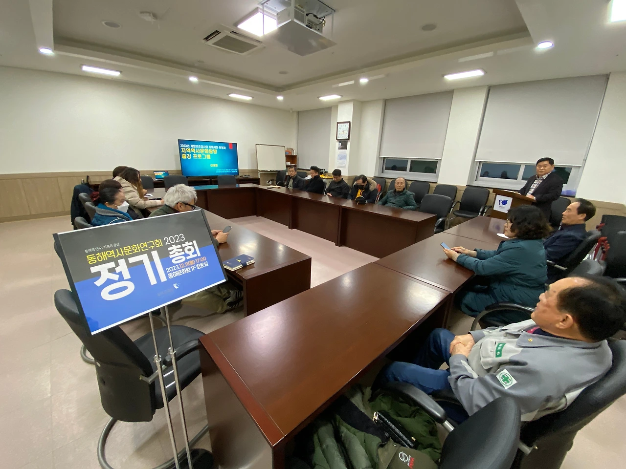 동해문화원 소속 동해역사문화연구회는 11일 오후 5시 문화원 청운실에서 12월 노을포럼을 겸한 정기총회를 열고 연구회 규정개정, 임원 선출, 노을포럼 특강을 실시했다. 이날 총회에서는 초대회장을 역임한 현 윤종대 회장을 2년 임기 연임을 확정하는 등 임원 선출과 강원대학교 김대영 연구교수가 기획한 환경 테마의 <지역 문화자원 연계 청소년 '줍깅' 문화여행> 사례 특강이 있었다.