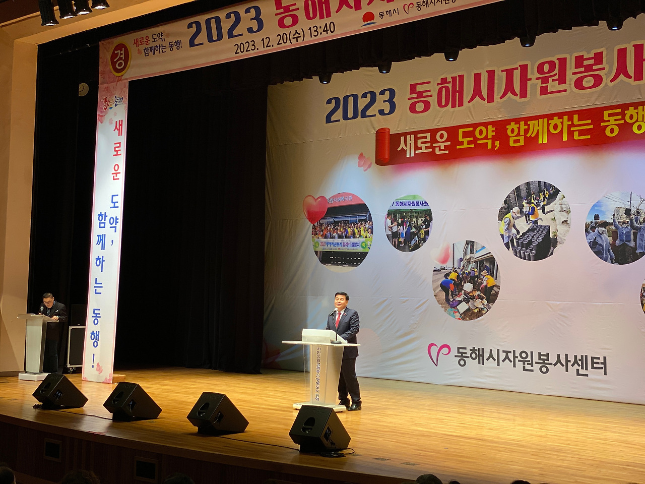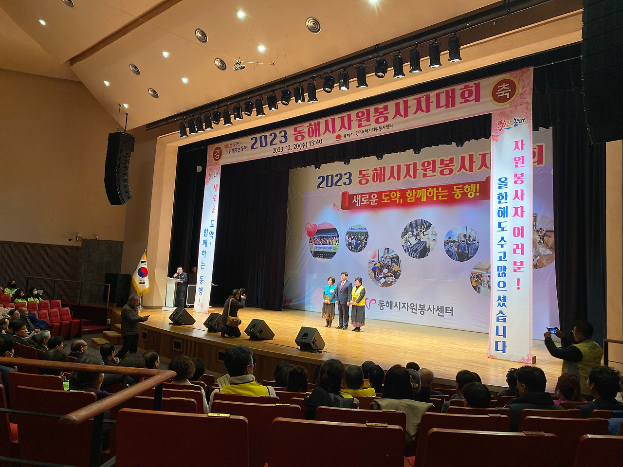 20일은 한 해 동안 도움 준 고마운 분들에게 감사하고 고생한 자원봉사자를 격려하기 위한 2023년 동해시자원봉사자대회가 있는 날이어서 문화예술회관 대공연장을 방문했다. 이날 행사장은 봉사명장 차승은 씨와 김대성 센터장을 비롯한 동해지역 봉사자 2만 7천5백여 명(동해시 인구 31%)을 대표로 참석한 열정 봉사자와 심규언 동해시장, 이동호 동해시의회 의장, 최재석, 김기하, 유순옥 도의원, 안성준 시의원 등 600여 명이 참석했다.