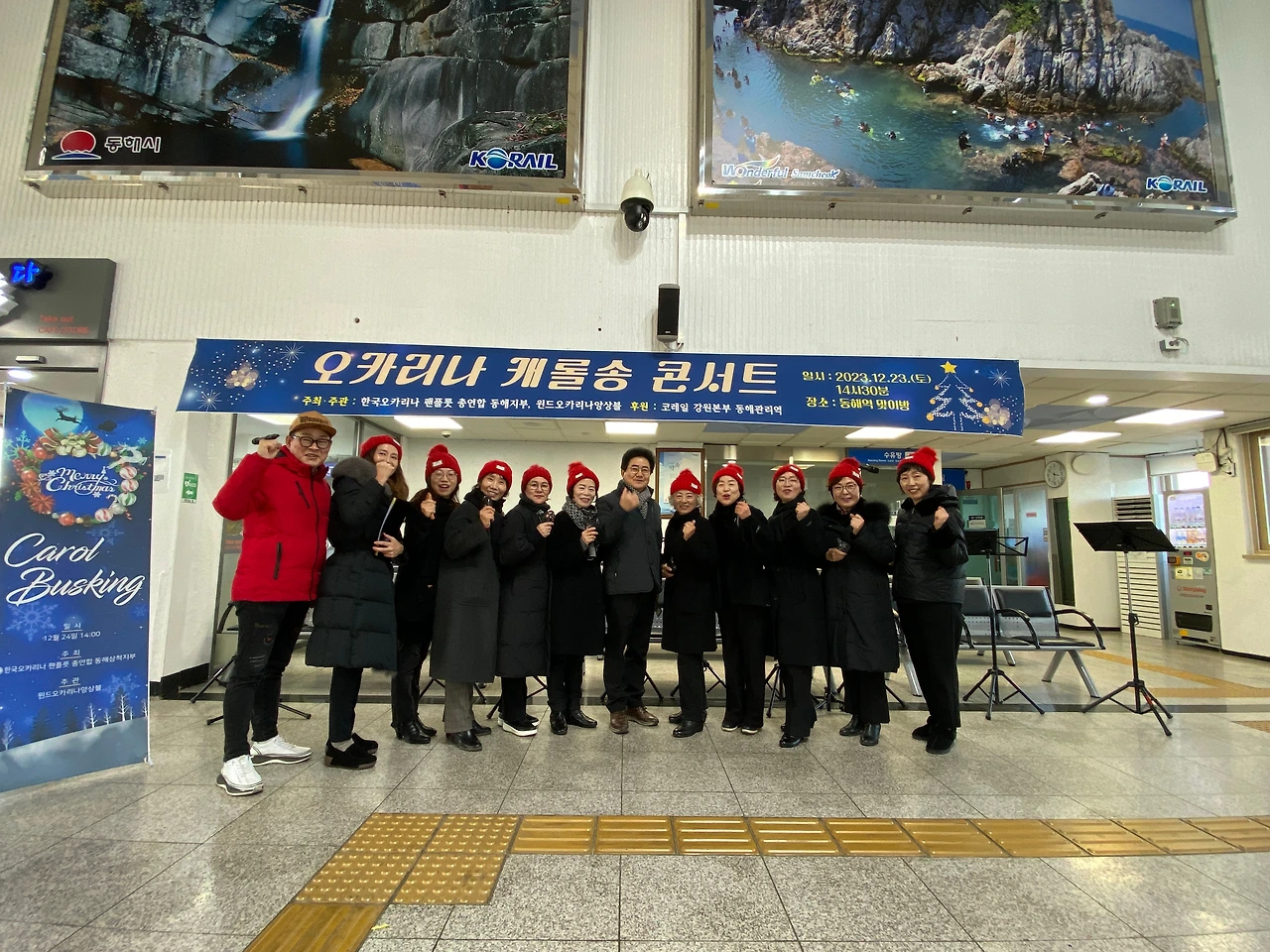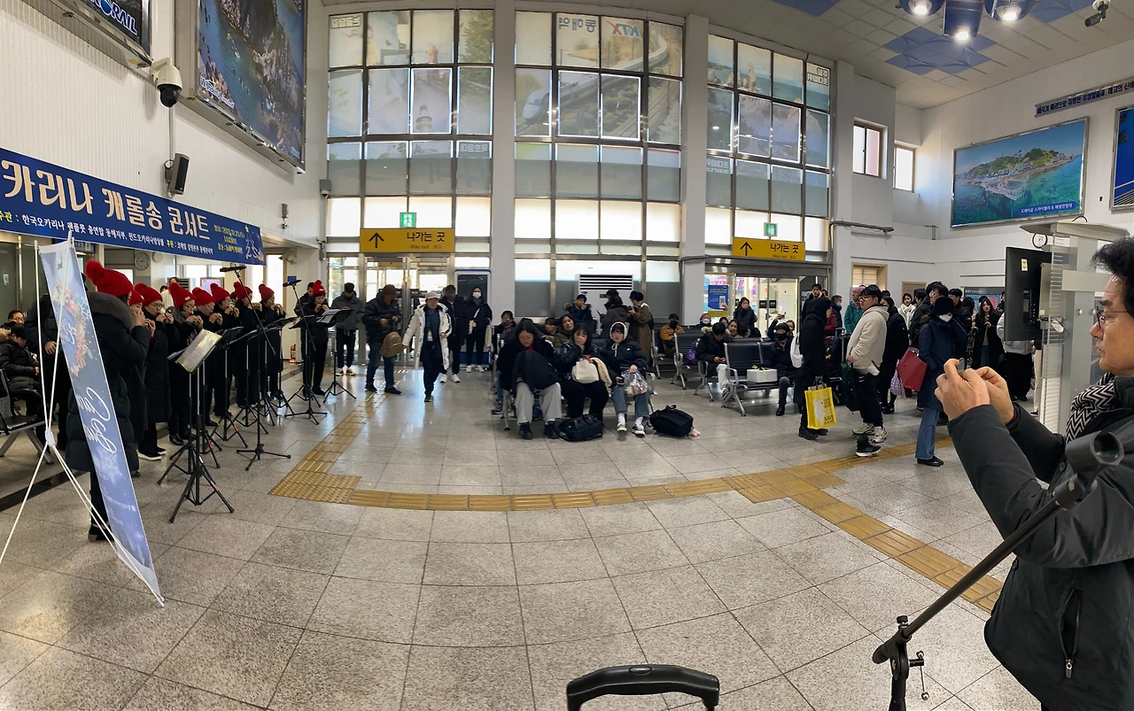 동해시와 동해역을 방문한 손님들을 환영하고 즐거운 성탄을 기원하는 오카리나 캐롤송 콘서트가 23일 토요일 오후 3시 강원특별자치도 동해시 송정동에 위치한 KTX 동해선 종착역 <동해역>에서 개최했다.