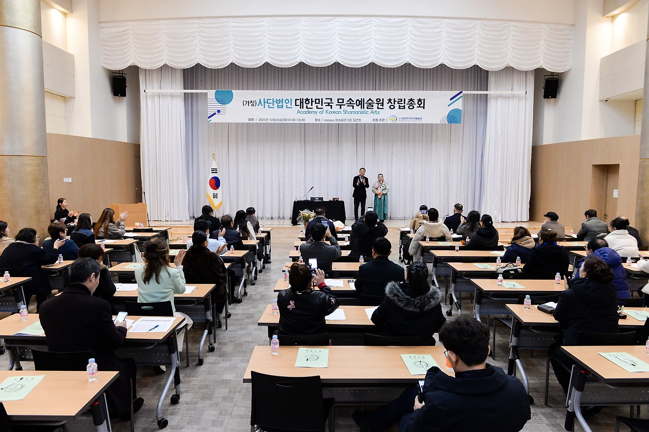 가칭 사단법인 대한민국 무속예술원(이하 무속예술원)이 26일 오후 2시 서울 양천구 목동 방송회관에서 만장일치로 초대 이사장으로 추대된 장경숙(여, 66•김포통진 새별상굿 보존회장) 초대 이사장을 비롯해 임시의장을 맡은 임웅수 대한민국농악연합회 이사장과 전국의 무속인과 관계자 70여 명이 참석해 창립총회를 열고 공식 출범했다.