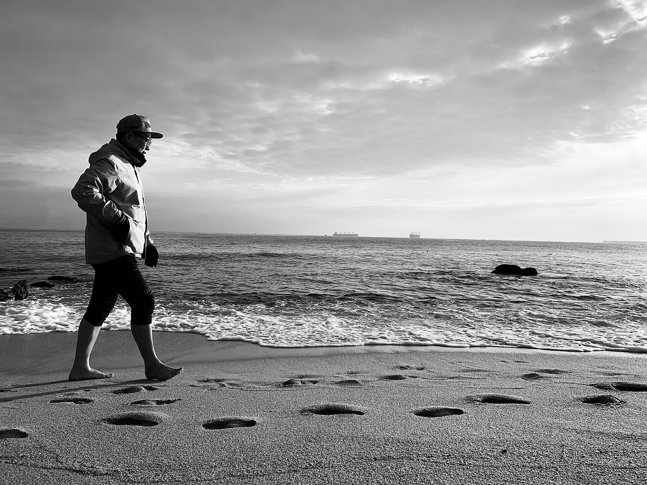 둘째, 해변•육지 관계없이 맨발 걷기는 특별한 출장을 제외한 일주일 5회 이상은 실천한다. 또한 맨발 걷기를 뒷받침하기 위한 근력운동 스쿼트와 종아리 펌핑을 하루 100회 이상 실천한다.