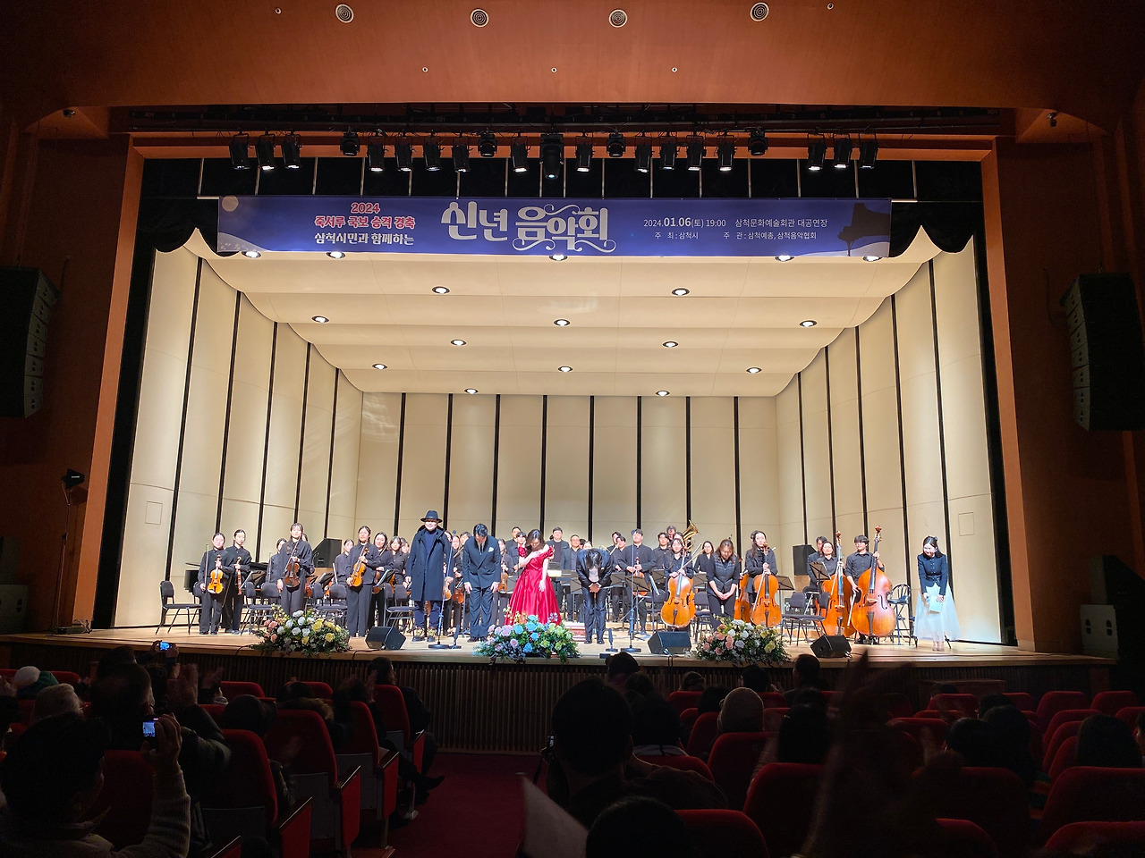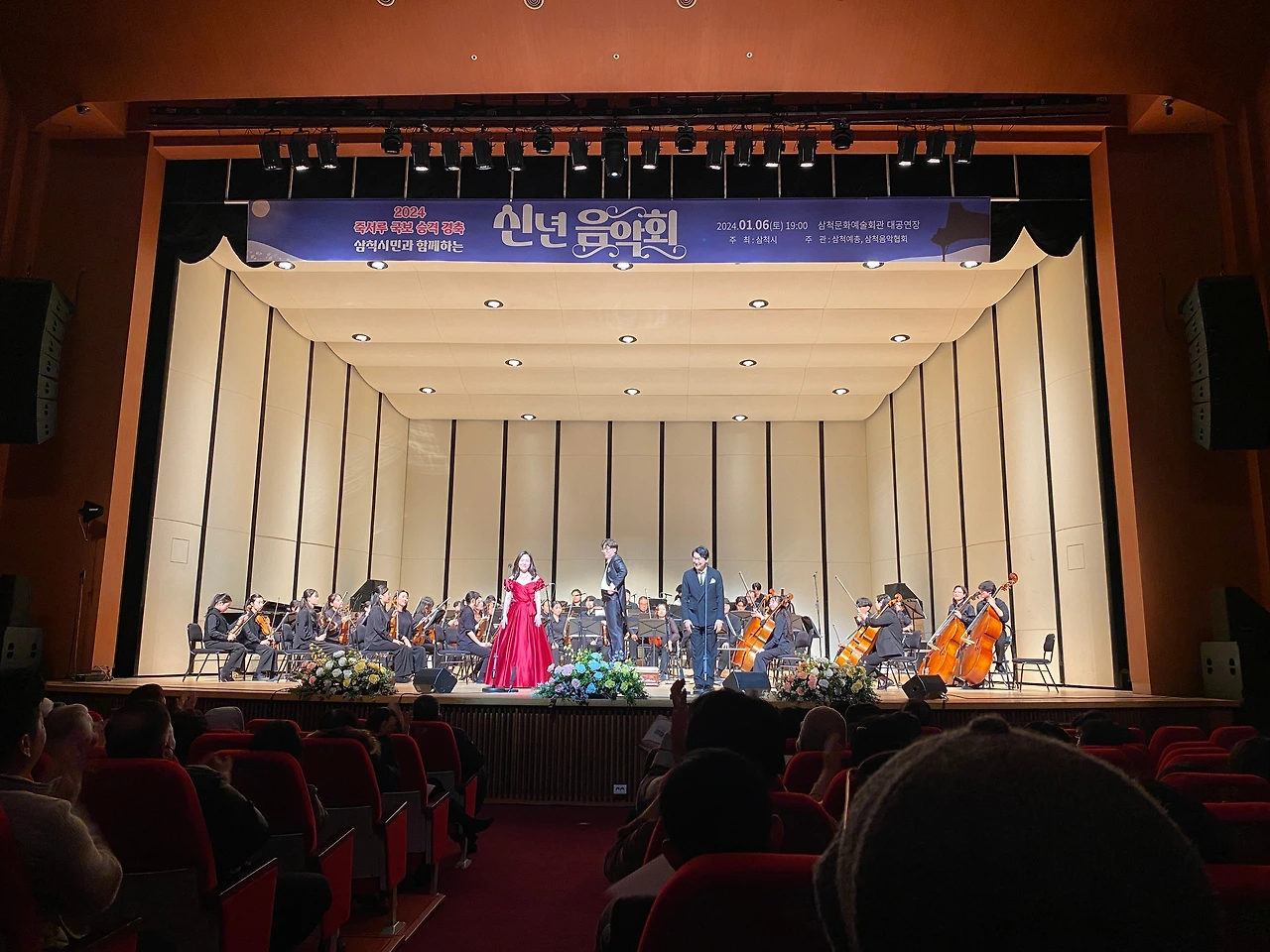 이날 신년음악회는 인기 MC로 다양한 무대에서 활발하게 활동하고 있는 에너지 넘치는 목소리의 진행자 김효정아나운서 진행으로 진행됐다. 출연은 서정근 색소폰 프로와 함께 밀라노 베르디 국립음악원 출신 소프라노 김효주, 국립오페라단 국내 초연 ‘윌리엄 텔’의 주인공 바리톤 김종표와 이날 루슬란과 루드밀라 서곡 ‘글린카‘ 를 시작으로 마지막 요한 슈트라우스의 ‘라데츠키 행진곡’까지 자체 연주와 협연 등 총 13곡 이상 연주를 담당한 삼척청소년오케스트라가 함께 출연해 주옥같은 클래식 명 레퍼토리를 연주해 큰 박수를 받았다.