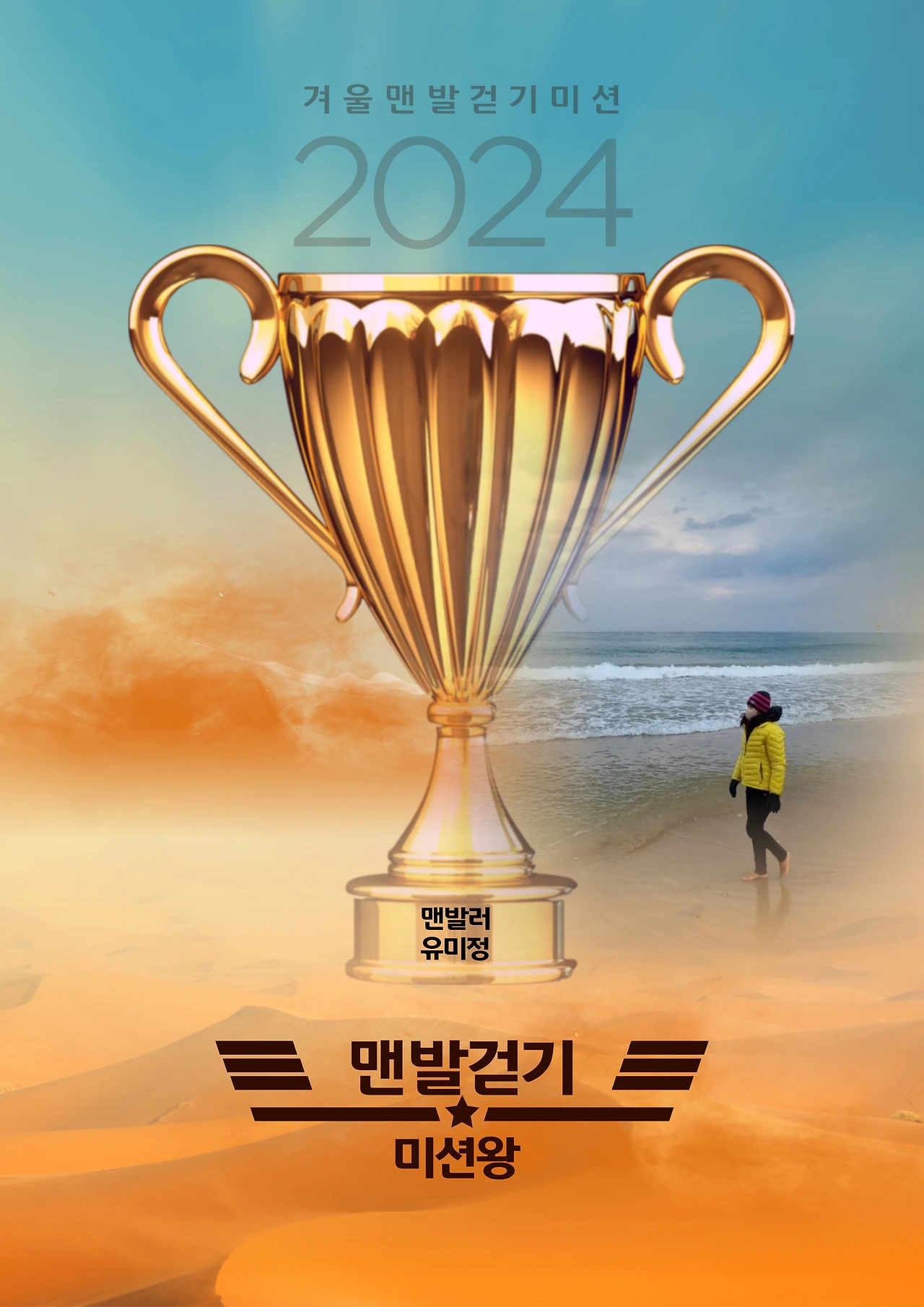 맨발 걷기 동해클럽 주관으로 진행한 첫겨울 맨발 걷기 미션왕을 12일 확정 발표했다. 이번 겨울 맨발 걷기 미션은 2023년 12월 1일부터 2024년 2월 말까지 선착순으로 30일을 먼저 걷고 밴드에 사진과 글 등 일정을 공개하는 회원에게 금 1돈을 선물로 증정하기로 약속하고 미션왕을 선발하는 미션 프로그램이었다. 맨발 걷기 동해클럽이 밴드회원과 오프라인 회원을 대상으로 지난해 12월 1일 시작했다. 이 번 미션의 미션왕 수상자는 밴드 회원으로 활동하면서 사고 없이 30일간 꾸준하게 해변 맨발 걷기를 진행해 온 동해 거주 유미정(71년생, 여)씨가 영예의 수상자로 확정됐다. 유 씨는 매일매일 맨발 걷기 현장소식을 에세이처럼 글과 사진으로 밴드에 공개하며 맨발 걷기를 감동적으로 진행해 회원들에게 귀감이 됐다. 시상은 오는 16일 오프라인 회원모임에서 후원자가 직접 부상과 미션왕 추억의 사진을 전달하고 소감을 듣는 시간을 마련할 계획이다.