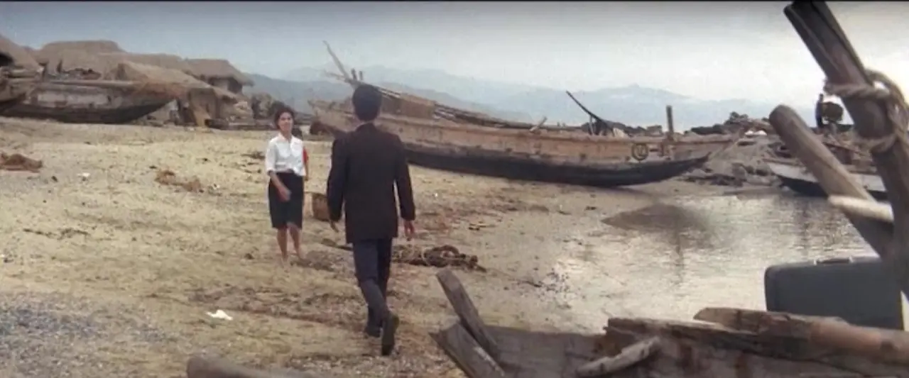 A. 묵호는 지난 100여 년 동안 조그만 포구에서 국내 7 대항으로 산업의 중심항으로 급격한 발전을 통해 화려함과 낭만, 그리고 깊은 침체의 수면에 빠진 매력적인 곳입니다. 그 속에서도 타임캡슐을 타고 돌아간 듯한 영화들이 몇 편이 있어요. 그중 1968년 상영된 신영균, 문희 주연의 “미워도 다시 한번”은 당시 37만의 최고의 관객을 동원했던 영화로서 4편까지 시리즈로 제작되었는데, 이 영화는 진부한 스토리인데도 불구하고 눈물샘을 자극하는 최루적인 내용을 담고 있다. 주인공인 신영균은 교수 의사로서 전도양양한 인물이고 시골에서 억지로 결혼시킨 부인도 있는 유부남이다. 문희는 묵호출신 학생으로 불륜인 줄 모르고 사랑에 빠진다. 유부남인 줄 알았을 때는, 이미 사랑의 결과를 만든 것을 알고 알리지도 않고 고향 묵호로 가서 아역인 김정훈을 홀로 키운다. 아들이 성장하면서 아빠에 대한 정을 표현할 때 큰 고민 속에 결심을 하여, 애기 아빠 친구 교수를 통해 아들의 존재를 알리고, 아들의 장래를 위해 서울에 아이를 맡기고 돌아온다. 그러나 정훈은 잘 대해주는 가정 속에서도 엄마와 정을 잊지 못해 방황하며 결국 합의하에 다시 모자간 상봉이 이루어진다. 요즘 보는 막장 드라마와 비슷한 줄거리 같지만 복수나, 불행한 사람이 없다. 해피 엔딩이다. 1960년대의 모습인데 문희의 복장은 모습은 마치 현대를 보는듯하다.