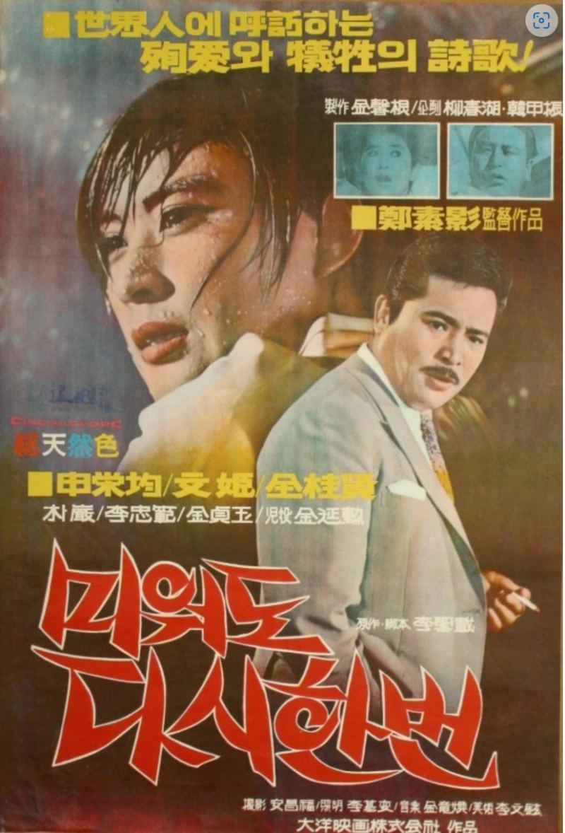 영화 ‘미워도 다시 한번'은 당시 배우 신영균, 문희, 전계현, 박암, 김신명 등이 출연해 중년의 남성과 처녀와의 불륜, 그리고 그 사이에서 태어난 아이의 갈등을 그려내며 여자의 희생과 모성애를 소재로 한 멜로 신파 영화이다. 사랑하고 있는데도 그 사랑이 성립될 수 없는 비극은 아마도 인류의 영원한 고민이며 사랑의 주제인지도 모른다. 동서고금을 막론하고 그러한 비극을 우리는 역사에서, 소설에서, 그리고 전설에서 목격한다. 정소영 감독은 그런 비극적 소재를 살려서 숱한 관객들을 울렸다.