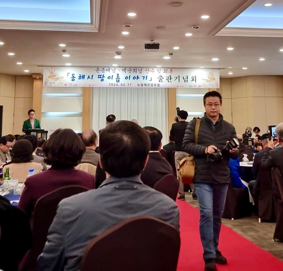 동해문화원 소속 동해역사문화연구회 윤종대 회장이 지난 10년간 동해시 곳곳을 발품을 팔며 기록한 ‘동해시 땅이름 이야기’ 출판기념회가 17일 동해 뉴동해관광호텔에서 개최됐다. 이날은 윤 회장의 산수(傘壽,80세)와 백순희 여사님과 회혼의 날이기도 했다. 예순 돌 되는 날을 기념하는 회혼(回婚)과 함께 마련된 이날 출판회는 심규언 동해시장과 이동호 동해시의회 의장, 서평을 해주신 오종식 동해문화원장과 가족등 300여 명이 참석해 성황을 이뤘다.