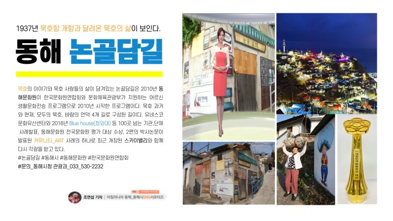 주민공동체 중심 문화재생, 복제할 수 없는 묵호 사람들의 삶과 마을이야기가 공공미술을 매개로 마을 문화재생, 마을 경로당 등 주민 활용 원더할매 합창단 콘텐츠 제작 무대 주인공으로 활용, 마을해설사 양성 문화적 어르신 일자리 창출, 지역 대학연계 세대공감 뮤지컬 제작 등