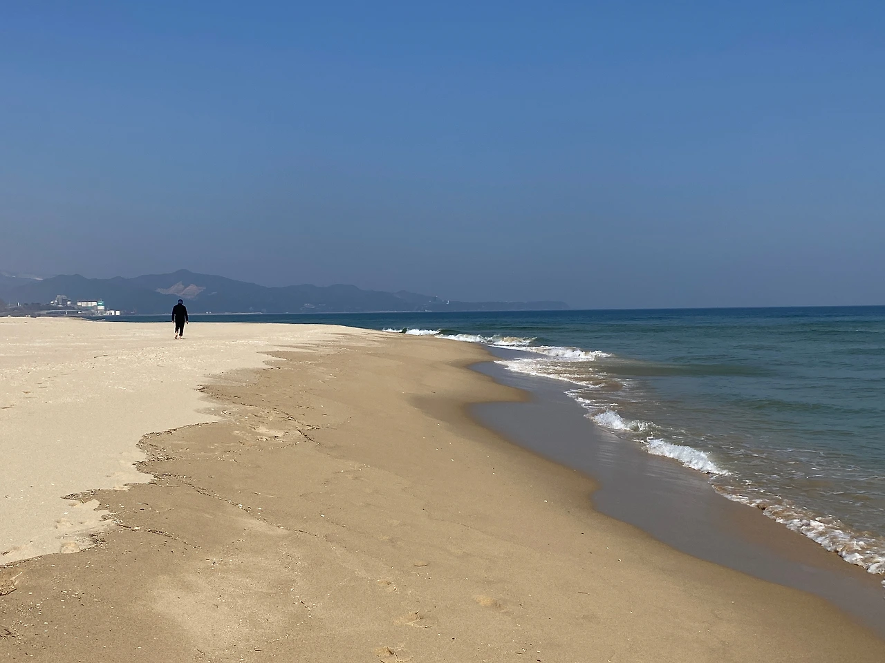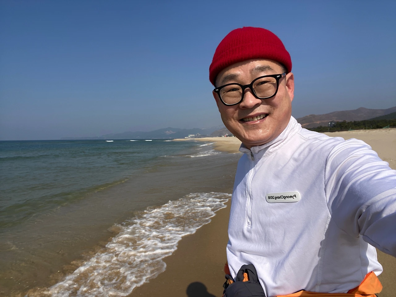 필자는 계절의 장점을 즐기고 걷기 과학을 만나기 위해 늘 맨발로 해변을 걷습니다. 주말은 망상해변, 평일은 도심 행복한 섬 해변을 걷습니다. 그때마다 부서진 백사장 모래와 만남은 나에게 큰 행복을 주는데요. 맨발이 모래와 접지하는 순간, 짜릿한 자연과의 조우가 시작됩니다. 따뜻한 햇살과 함께 해변길에 발걸음을 옮기면, 발은 어느새 특유의 바다향기와 따뜻함이 전해집니다. 파도소리와 부는 바람소리가 귓가를 감싸면, 마음은 평화롭고 안정되어 가고 곧 내가 바라던 세상을 만나게 됩니다. 오늘 <동해의 신선>은 바로 나입니다.
