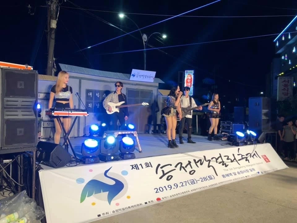 평소 막걸리 팬클럽을 만들고 막걸리를 즐겨마시던 동지들과 솔 숲에서 막걸리축제를 해보자는 의견을 던졌다. 며칠뒤 어찌 들었는지 송정동주민센터 당시 이정희 동장이 면담을 요청했다. 만나보니 축제를 송정동축제로 같이하면 어떻겠냐는 것이다. 젠트리피케이션 방지대책만 마련해 준다면 좋다는 의견을 제시하고 동장은 그렇게 하겠다는 답을 줬다. 필자가 기획하고 총감독을 맡고 활동가 후배가 현장감동을 담당하는 등 지역 활동가 동료들과 함께 만든 대학축제형 송정막걸리축제가 송정시장을 중심으로 개최대 대박을 터트린 것이다.
