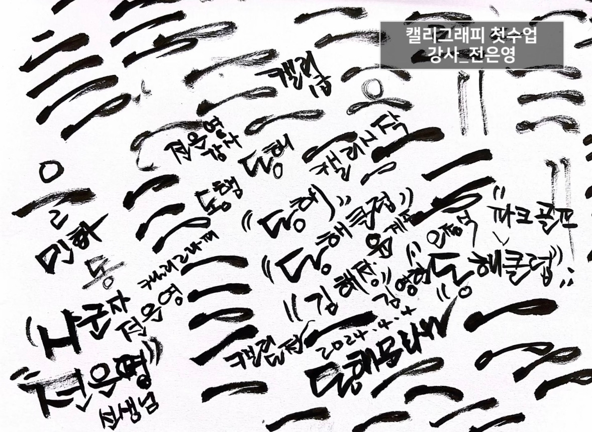오늘 시작한 동해문화원 캘리그래피 전은영 강사는 전국대회에서 여러 차례 입상한 경력이 있는 캘리 전문작가다. 그동안 강사보다 작가 활동에 집중했던 분으로 캘리중에서도 예술성이 돋보이는 서체로 인기가 예감된다.