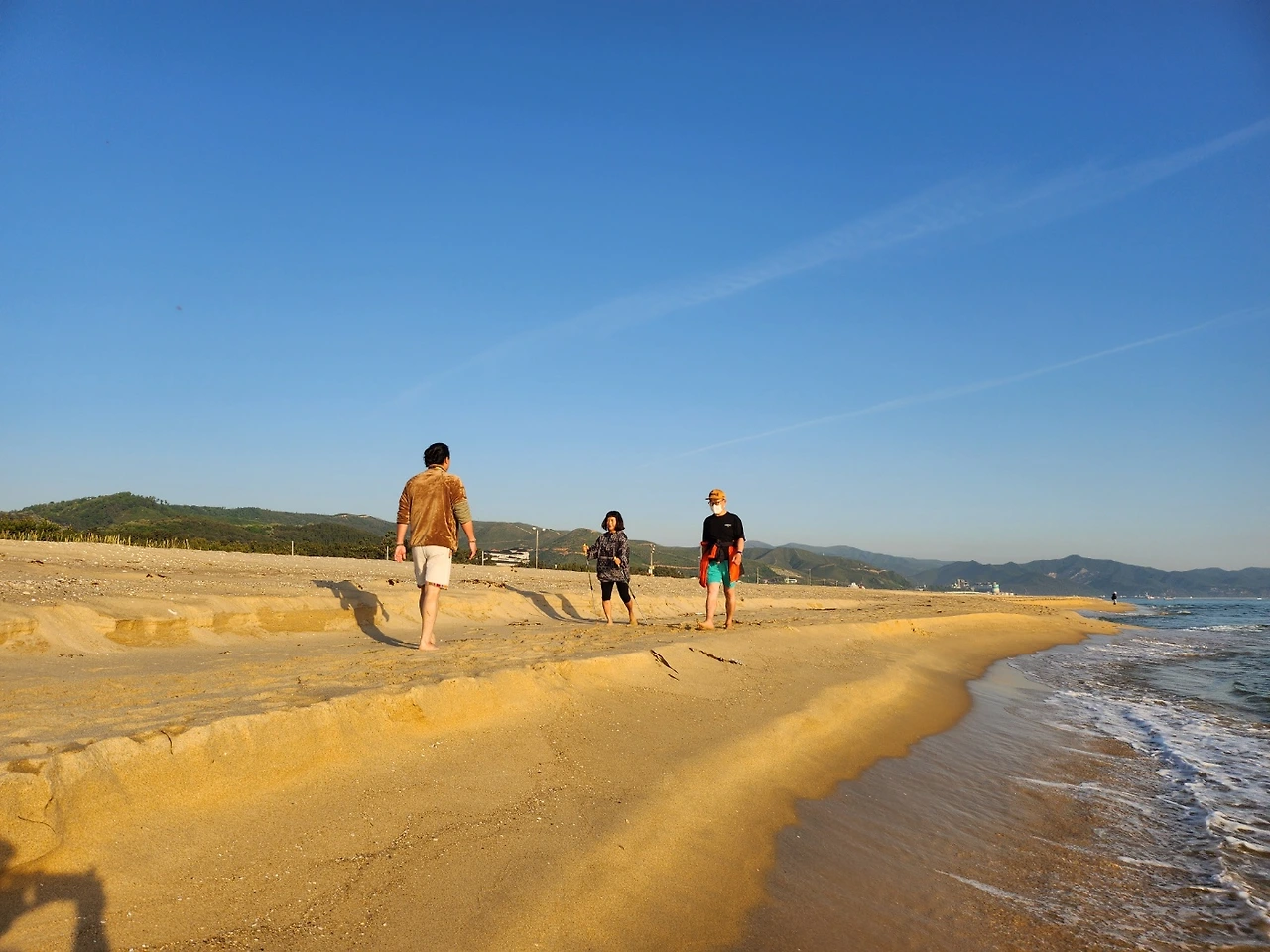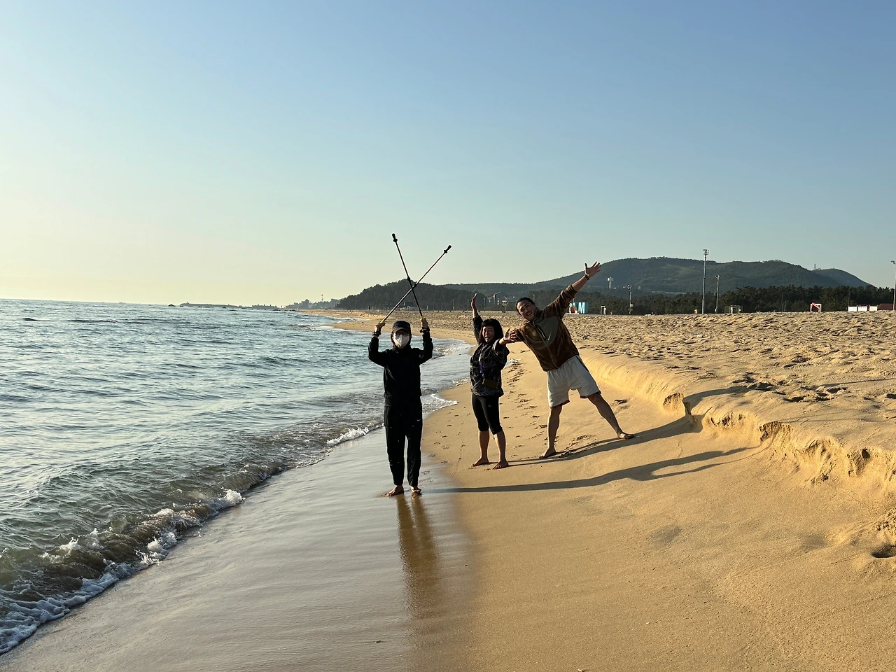 맨발 걷기에 푹 빠진 저는 잠시 생각해 봤다. 맨발로 해변에서 노르딕 워킹을 한다면 어떤 효과가 있을까? 하고 말이다. 일단 균형 잡는 자세에 도움이 될듯하고 운동효과도 배가 될듯한 느낌이다. 최근 노르딕 워킹 강사 1차 과정을 수료하고 노르딕 맨발 워킹을 진행하고 있는 김박사에게 현장에서 질문을 해봤다.