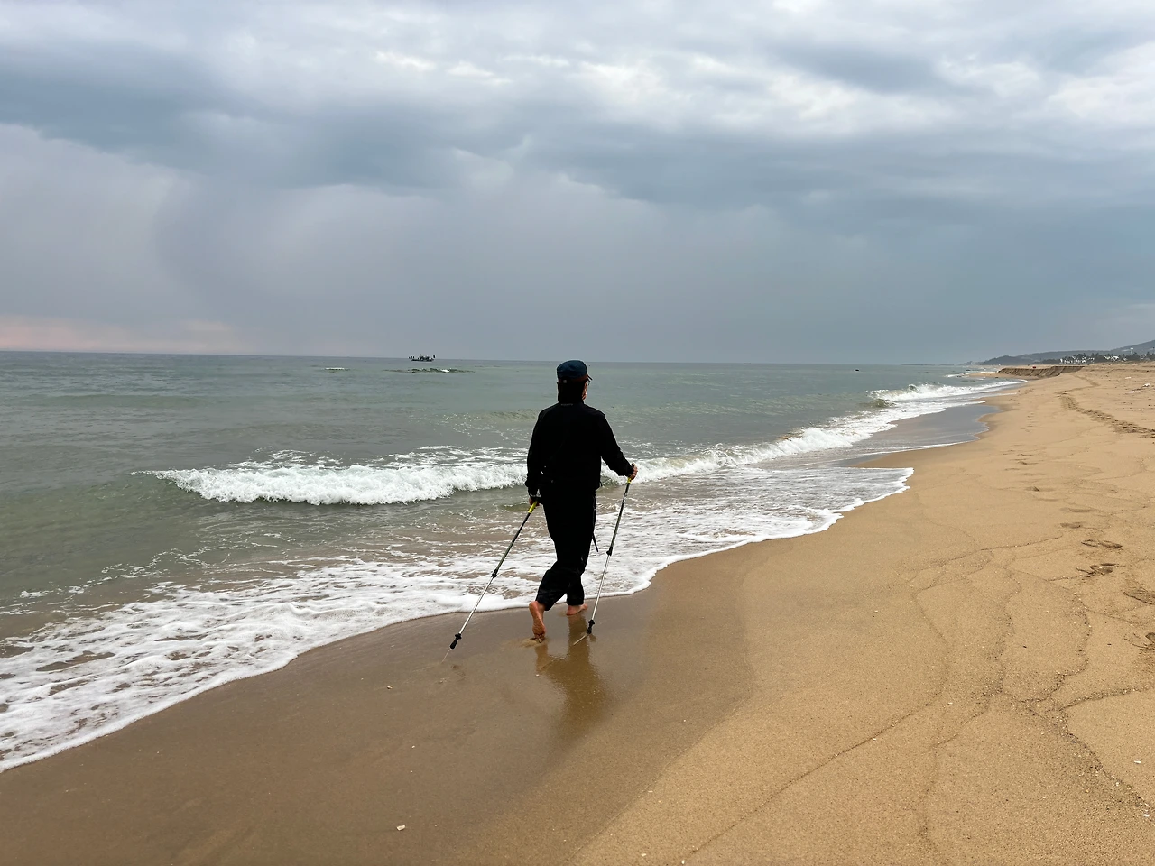 해변에서 노르딕 워킹을 맨발로 한다면 어떤 느낌일까? 물론 일부 전문가들은 제한적인 장소 등 긍정보다 부정적인 의견이 더 나올 수도 있다. 하지만 맨발러 경험자들은 찬성하는 분들도 꽤 있을 듯하다. 안 쓰던 근육에 도움이 되고 자세 교정과 운동효과가 높기 때문이다.