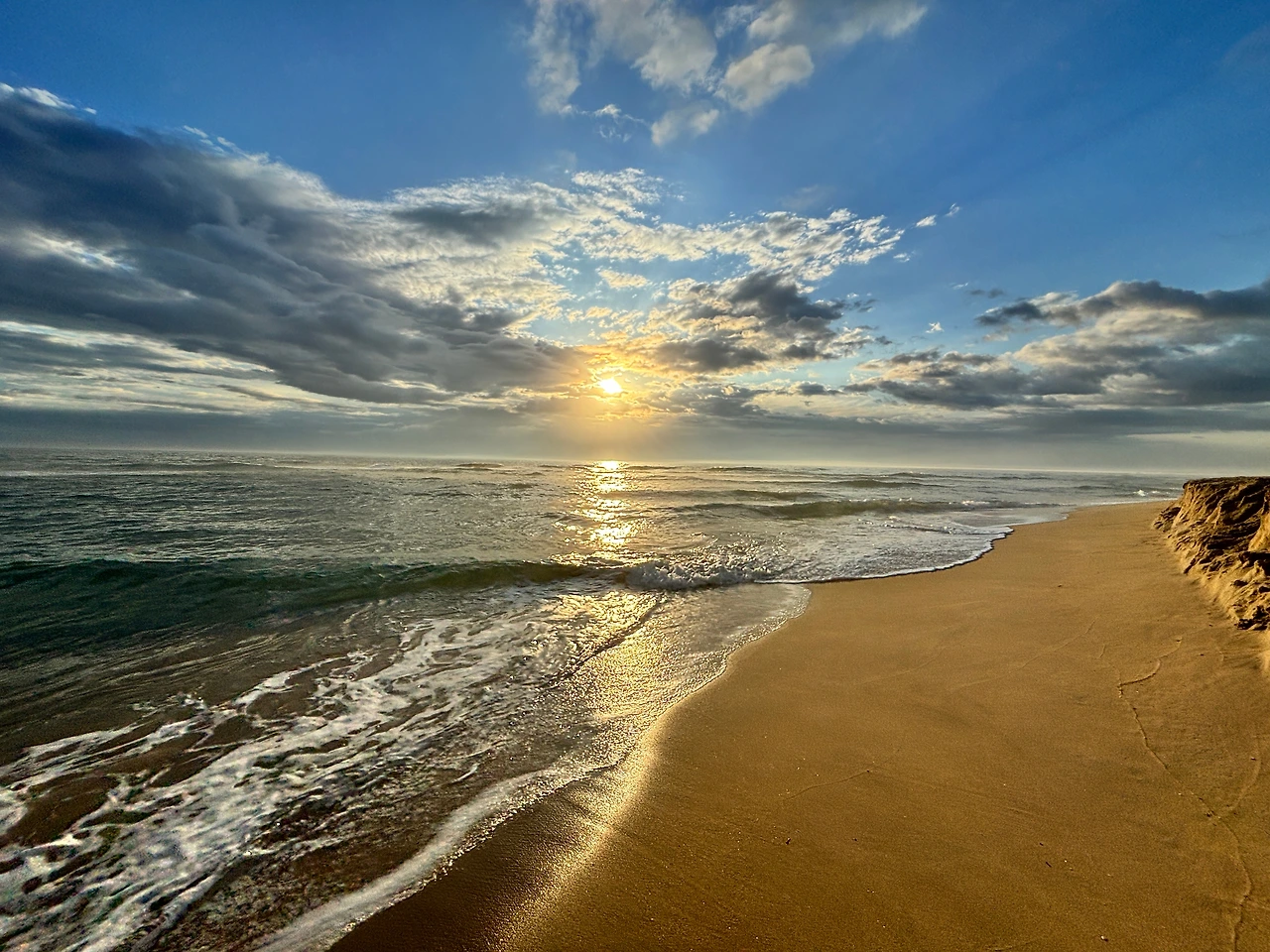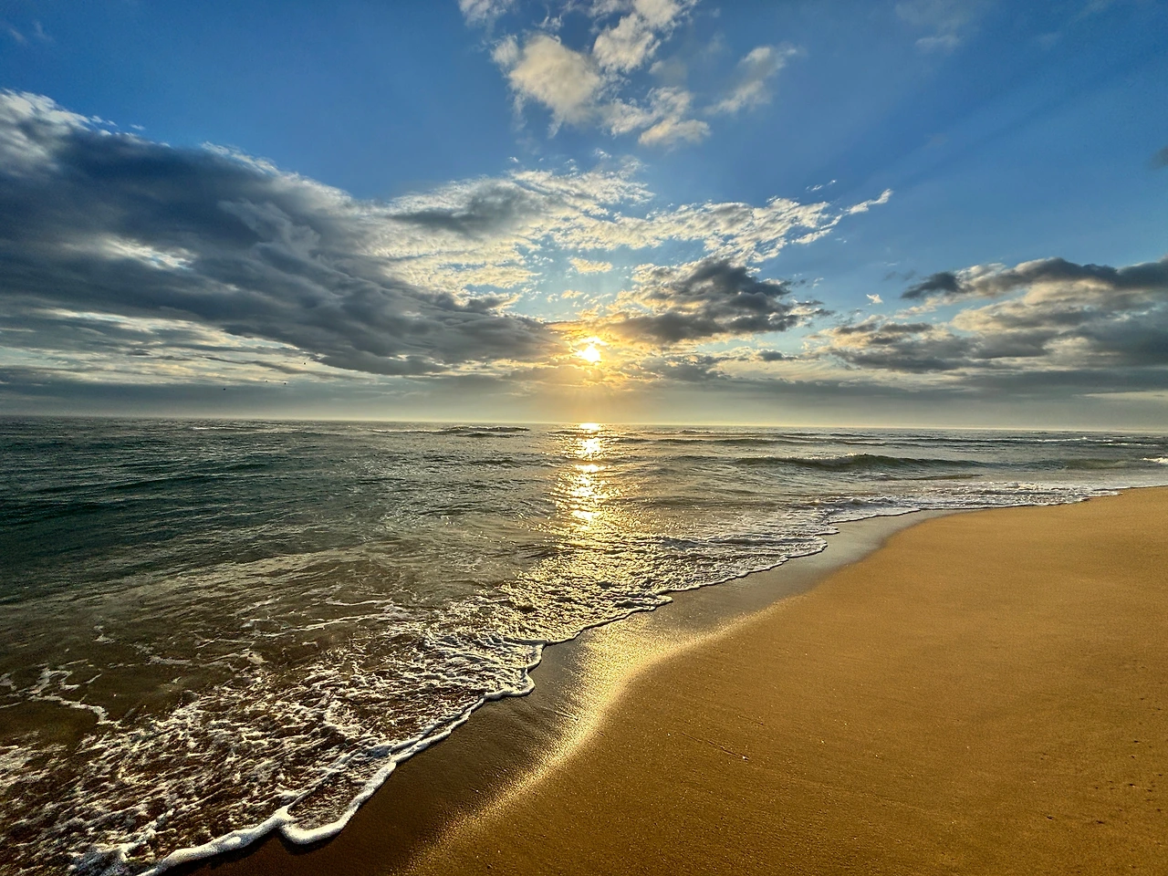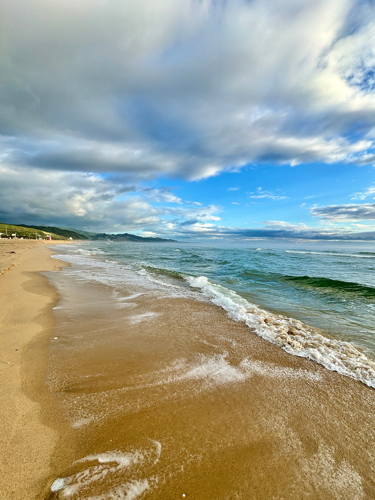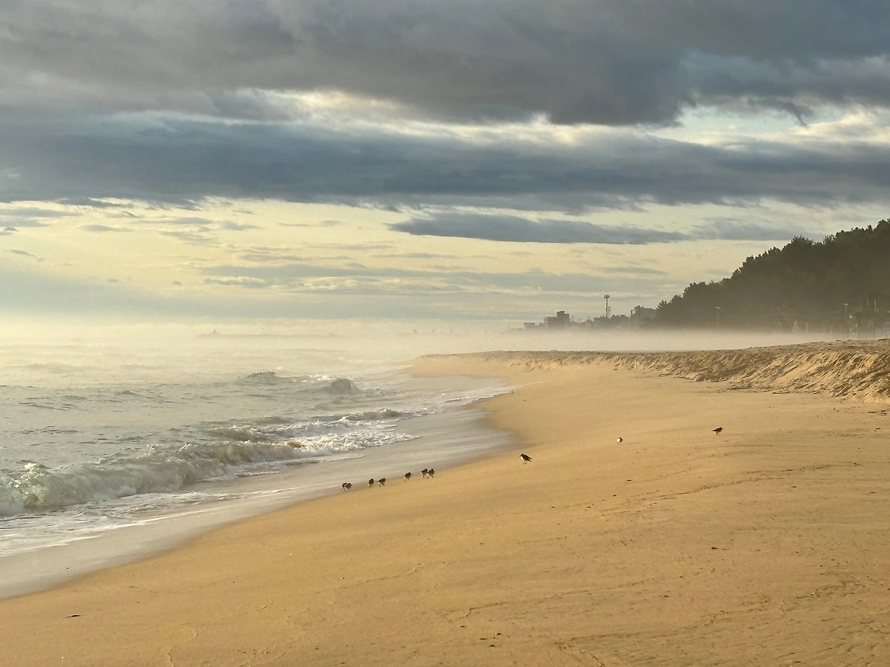해변을 따라 걷는 동안 바람이 부는 소리와 파도가 밀려오는 소리가 내 귓가를 맴돌면서 마음이 평화로워졌다.