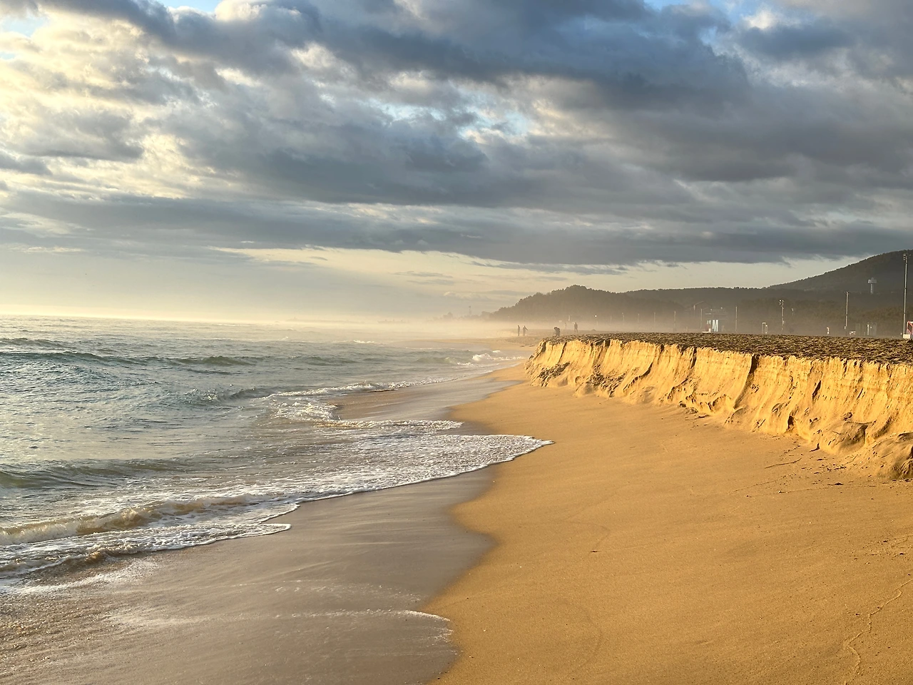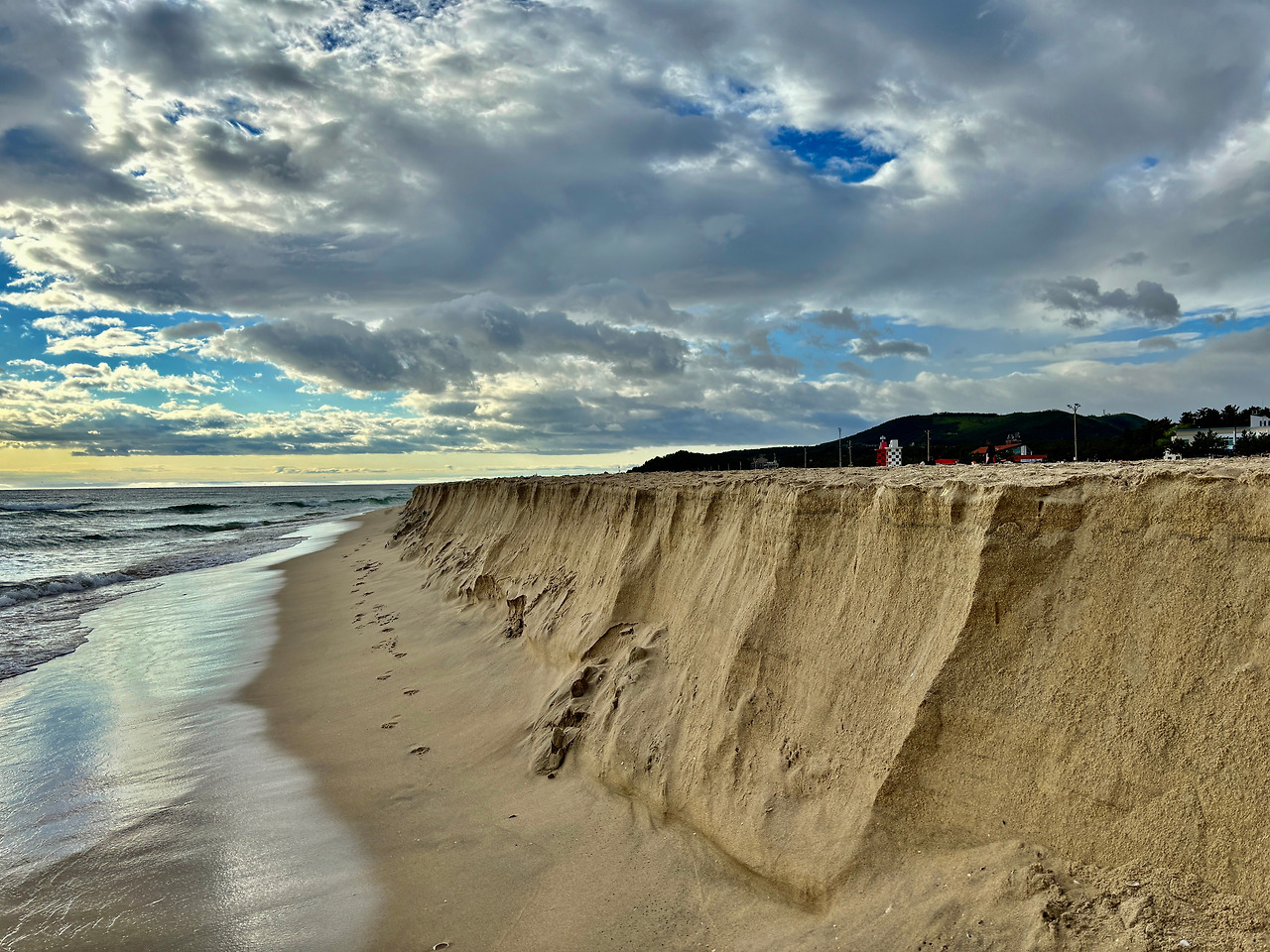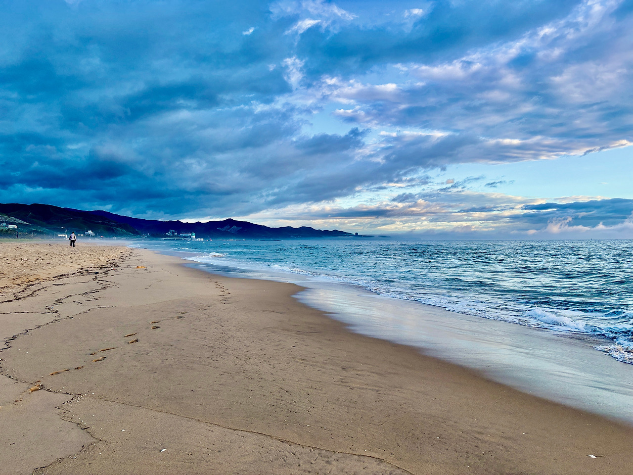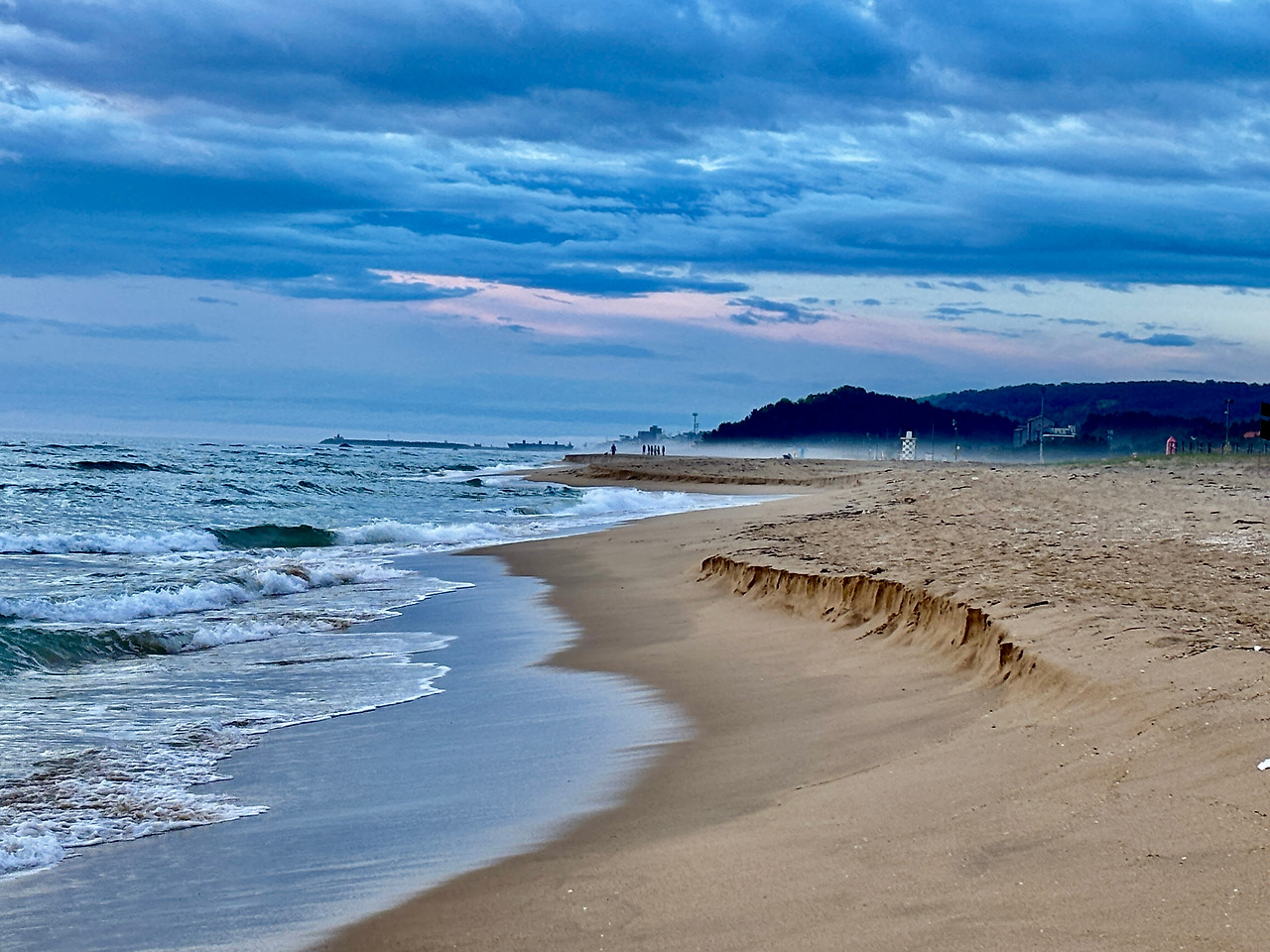 해변을 따라 걷는 동안 바람이 부는 소리와 파도가 밀려오는 소리가 내 귓가를 맴돌면서 마음이 평화로워졌다.