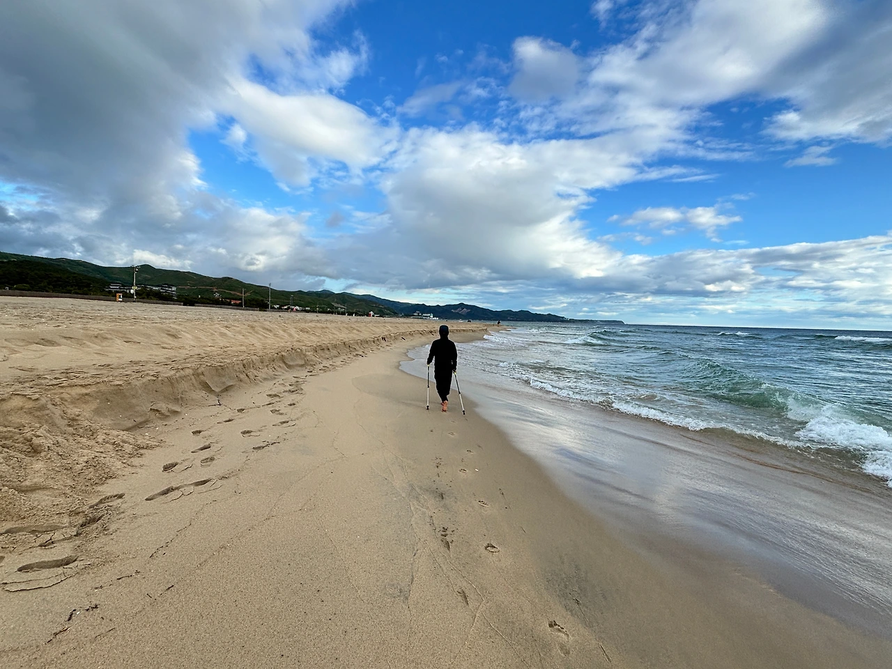 “눈앞에 펼쳐진 푸른 바다와 햇살 가득한 하늘이 마치 화면 한가운데에서 펼쳐진 장면 같다. 바닷물이 발바닥을 적시면서 시원한 감촉이 온몸을 감싸며 자유로움을 느끼게 했다.