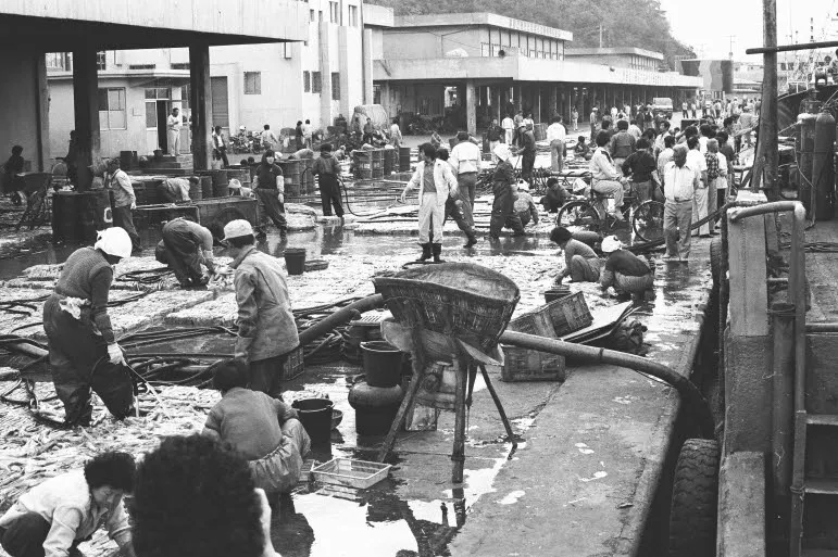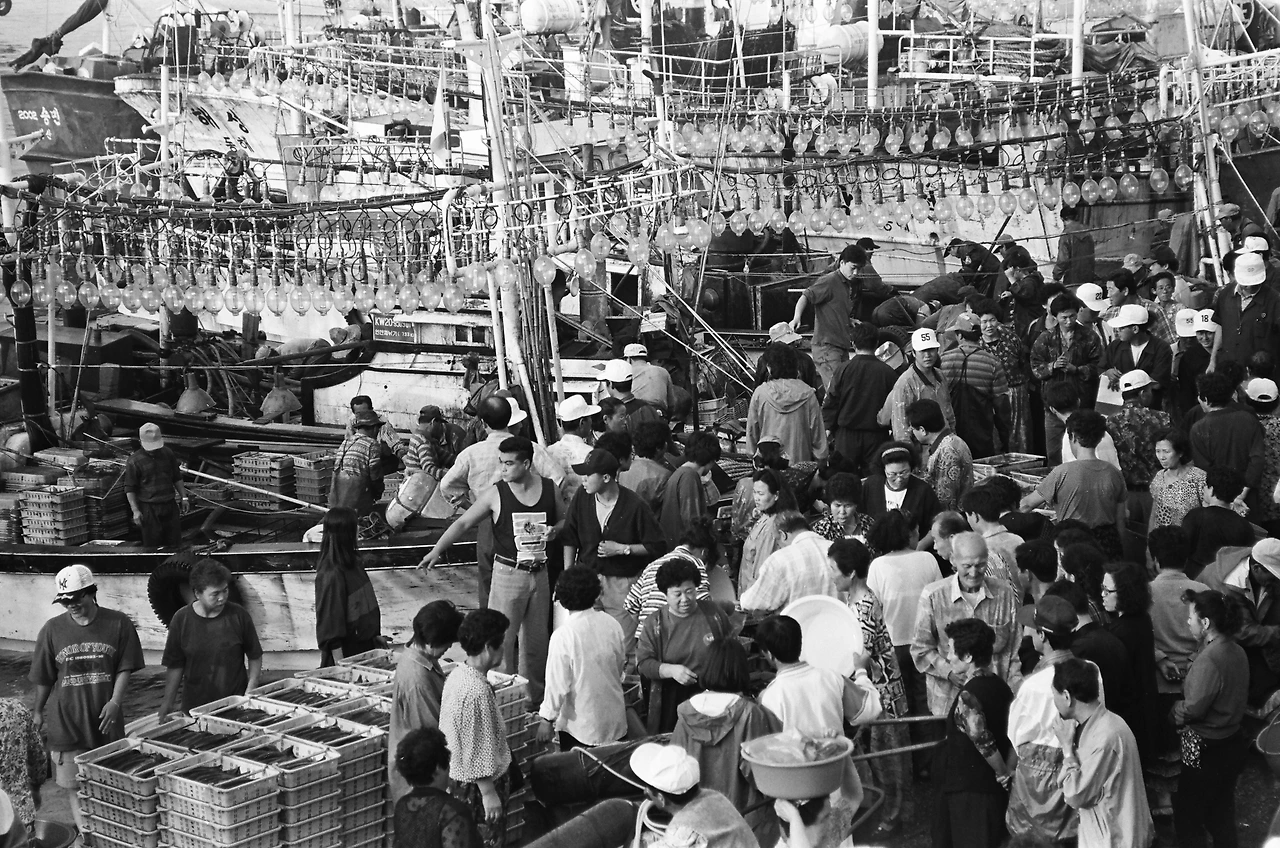 "안묵호 아이들이 깡을 키우는 데 필수적인 게 다이빙이었어요. 배들이 드나드는 항구에 뛰어든다는 게 쉽지 않았어요. 수영도 누가 가르쳐 주는 것도 아니니 혼자 개헤엄으로 손 발을 부지런히 흔들어 터득 할 수밖에 없었어요. 그러니 부두에서 바다를 내려다보면 밑바닥이 안 보이는 시커먼 물은 오금이 저릴 만큼 무서웠어요. 그런데 그곳에 뛰어내리다니! 어른이 된 지금도 나는 나무 어판장에서 바닷물에 뛰어들던 11살 때를 생각하곤 해요. 부대장을 시켜준다는 대장의 말에 용기를 냈지요. 눈을 질끈 감고, 불알을 두 손으로 꼭 감싸 쥐고 하늘로 점프했다. '풍덩'하고 물에 뛰어내렸어요. 순간 해냈다는 기쁨과 이 무서운 물에서 나가야 한다는 일념으로 죽을힘을 다해 헤엄치던 일이 어제 일처럼 생각나곤 해요. 어릴 때 같이 놀던 친구들 중 대다수가 묵호를 떠났어요. 내가 고향을 떠나지 못하고 항구에서 일하는 이유 중 하나는 어판장에서 보아왔던 밤 불빛 때문인지 몰라요. '나도 이다음 어른이 되면 항구를 밝히는 사람이 될 거야!' 하며 밤 불빛을 바라보며 여러 번 결심을 했거든요."