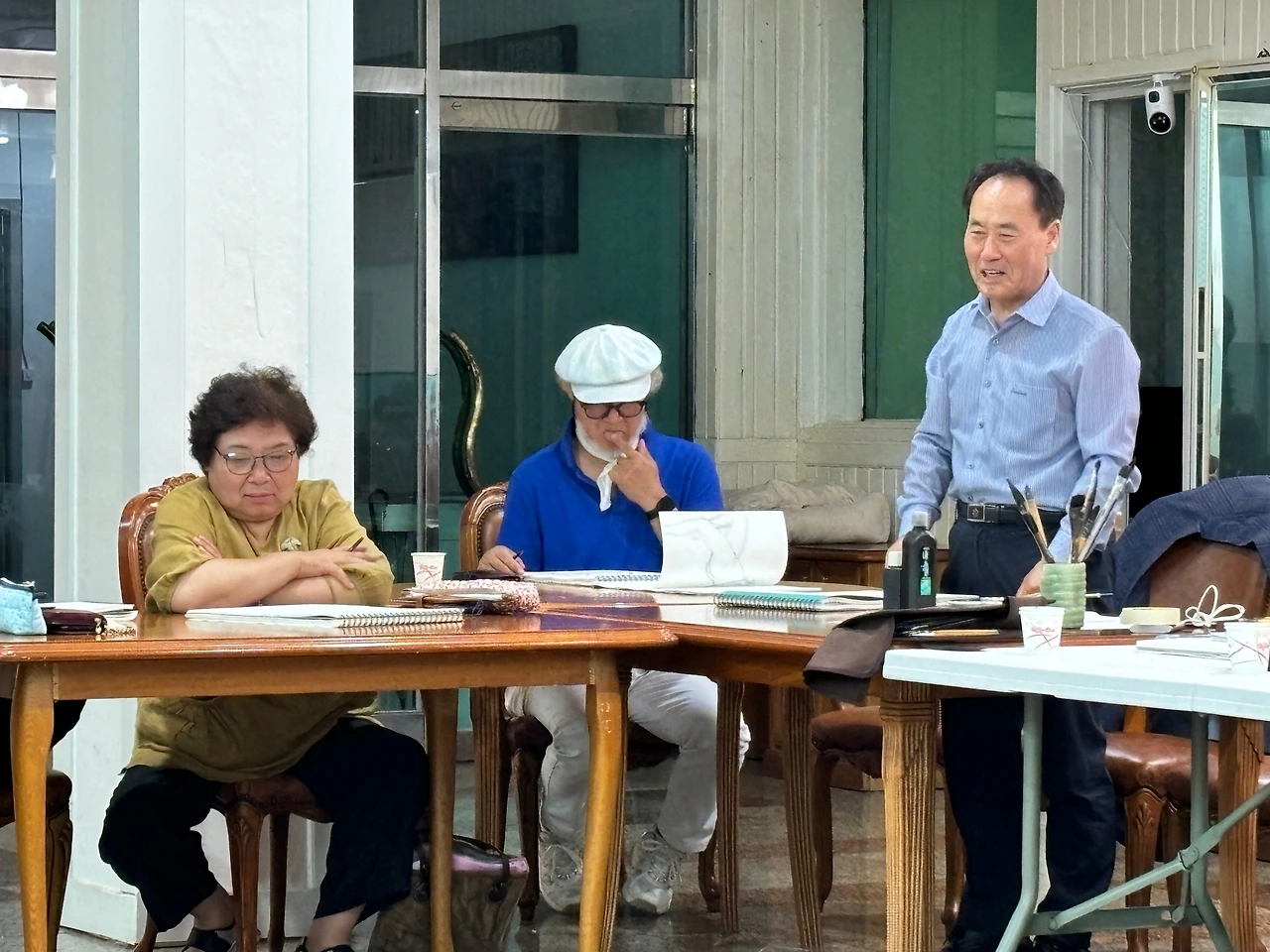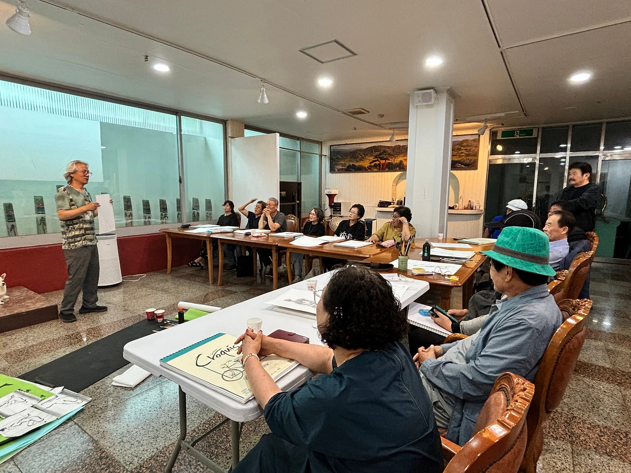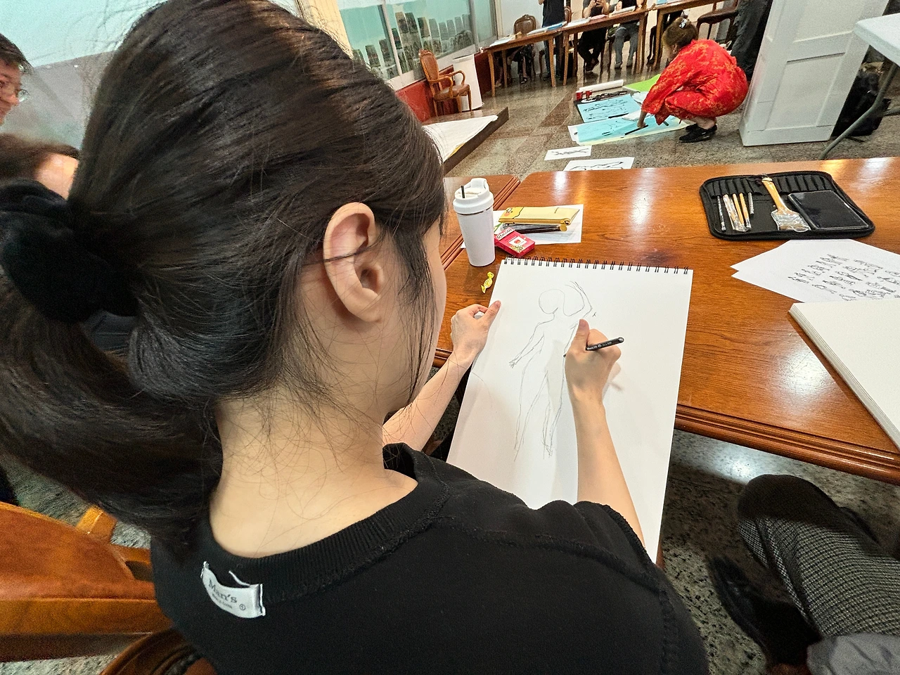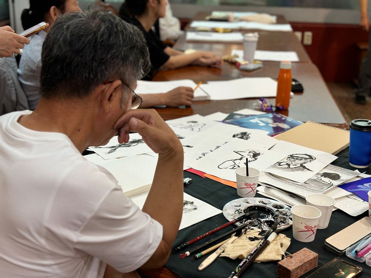 A3 용지 크기의 드로잉 스케치 전문 도화지에 그린 첫 그림은 사람이 아니라 마치 물개를 그린 듯 실망했다. 김형권 화백의 스케치 이론강의와 장성희 작가의 곡선, 다리 팔 등 구분선 그리는 방법 코멘트는 이날 체험의 동기 부여가 됐다. 5분 타임을 시작으로 1분 안에 스케치하는 시간 등 총 50여 장 규모의 3시간 드로잉 스케치를 끝까지 참여했다.