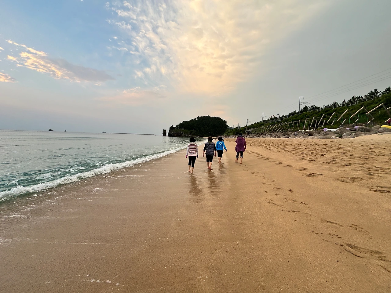 오늘의 해변은 비가 내린 후라 그런지 더욱 맑고 깨끗했다. 마치 비가 모든 것을 씻어내고 새롭게 시작할 준비를 마친 듯했다. 맨발러들은 그 맑고 깨끗한 모래 위를 걸으며 자연의 정수를 만끽했다. 그들의 발자국은 해변 위에 잠시 흔적을 남기지만 곧 파도에 의해 지워진다. 그러나 그 순간순간의 경험은 각자의 마음속에 깊이 새겨진다.
