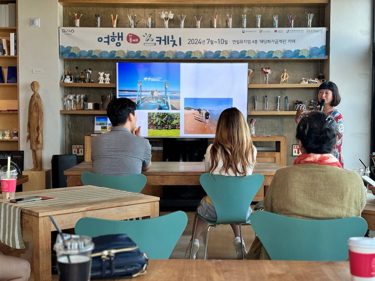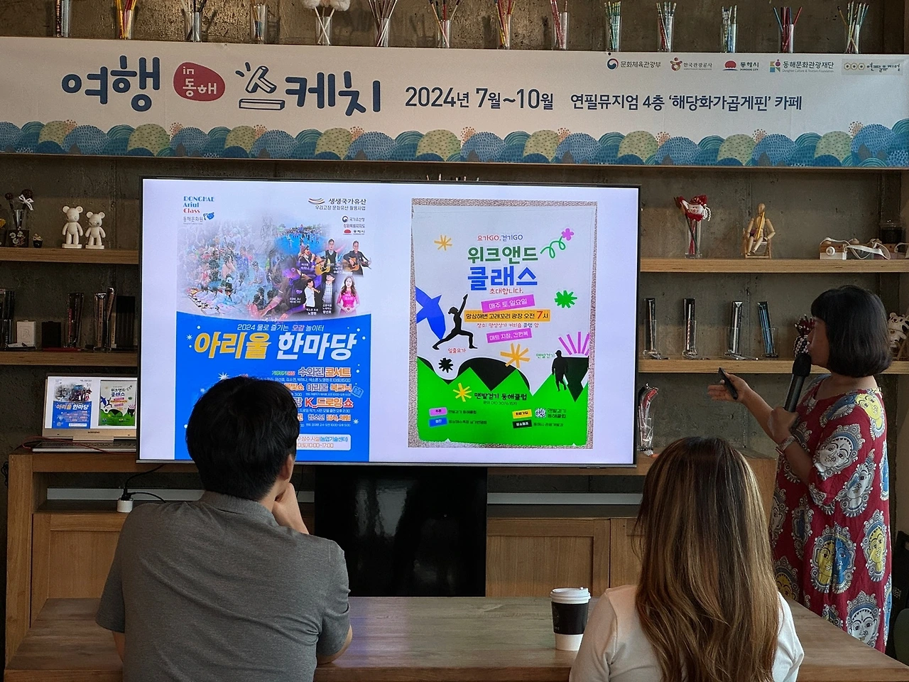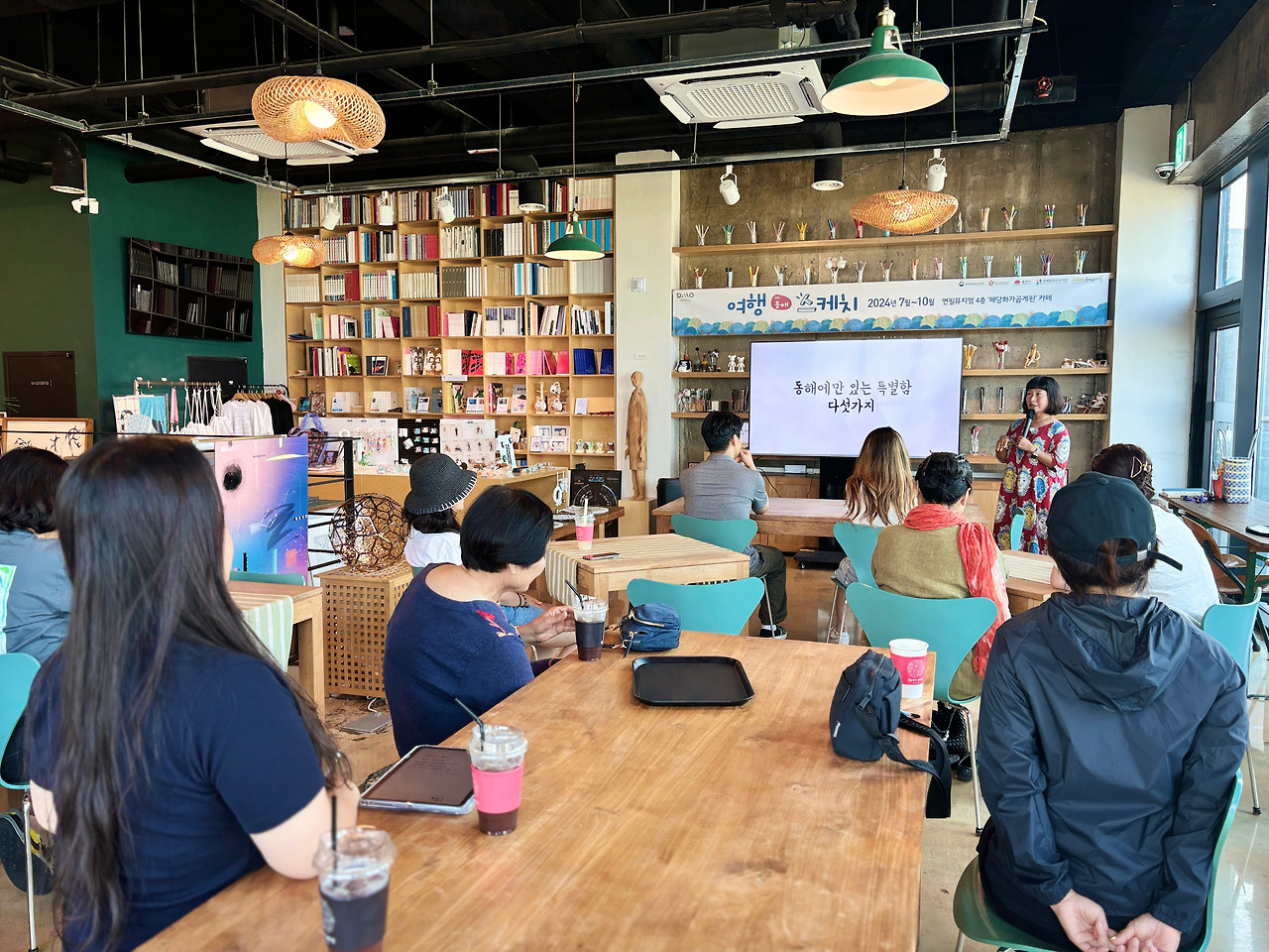 동해의 멋진 해변을 따라 천천히 달리는 동해선 KTX로 바다에 취하다 보면 도착하게 되는 곳이 술과 바람의 도시 '묵호'다. 3일 토요일, 동해문화관광재단이 주관한 DMO(DMO(Destination Management Organization, 지역 관광 추진 조직) 사업 ‘여행 in 동해 스케치’의 하나로, 여행작가 채지형 씨가 멘토로 참여하는 "동해여행의 모든 것" 주제의 특강이 열리는 날이다. 오후 5시 동해 연필박물관 4층 ‘해당화가 곱게 핀’ 카페는 KTX를 타고 막 도착한 여행자들과 '맨발 걷기 동해클럽' 회원들과 시민 등 20여 명이 모였다. 오늘의 멘토 채 작가는 동해의 특별함과 매력을 설명하며, 이 도시를 한눈에 보는 방법을 소개했다.