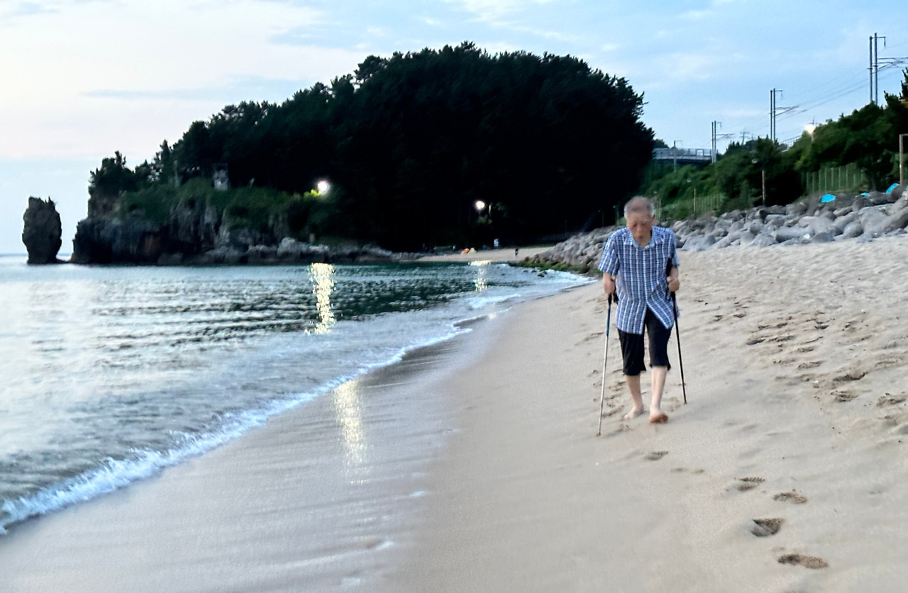 20대의 젊은이들부터 양손에 스틱을 잡은 90대의 어르신까지, 다양한 연령대의 사람들이 한데 어울려 걷는 모습은 그 자체로 아름답습니다. 맨발로 걷는다는 많은 사람들을 하나로 묶을 수 있고 또 다른 공동체가 될 수 있다는 사실이 놀랍습니다. 저마다의 사연과 목적을 가지고 이 해변에 나섰겠지만, 결국 모두가 같은 자연 속에서 같은 바람을 느끼며 걷고 있다는 점에서 우리는 하나입니다.