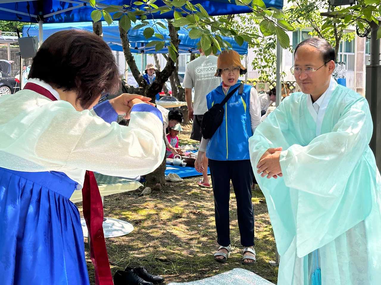 아리울한마당 중심에는 물이 있었다. 물은 무대를 꾸미는 소재에 그치지 않고, 행사 전체를 관통하는 주제로 자리 잡았다. 그중에서도 맨 처음 눈에 들어온 곳은 주제에 적합한 아이디어로 사전 접수한 참가자를 대상으로 운영한 체험부스였다. 여행작가 채지형, 조성중 씨가 운영한 아리울 북크닉, 국가공인 실천예절지도사 곽연철, 최고급다례사 이행심, 전 동해시유도회 신혜영 회장 등이 참여한 K_ 선비학교 선비다례와 예절체험, 강원대 인문사회과학연구소 김대영 연구원이 멘토로 참여한 ESG 환경생활 등이었다.