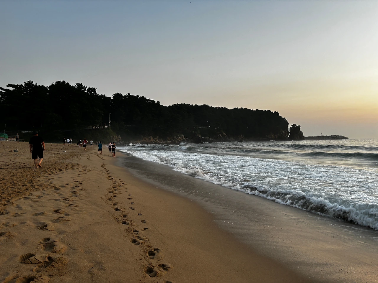 어느새 274일째를 맞이한 동해의 도심, 행복한 섬 해변의 맨발 걷기. 여름 열기가 채 가시지 않은 듯하지만, 기온은 어느덧 25도로 내려가 가을이 성큼 다가왔음을 느끼게 한다. 13일 화요일 아침, 유난히 높은 파도가 백사장 깊숙이 밀려오고, 이른 새벽부터 해변은 분주하다. 여행자들은 저마다 여명의 빛을 받으며 떠오르는 일출을 기다리며 설렘 속에 모여들고 있다. 그들의 손가락 사이로 태양을 담으려는 포즈는 여유롭고 넉넉하게 펼쳐져 있다.