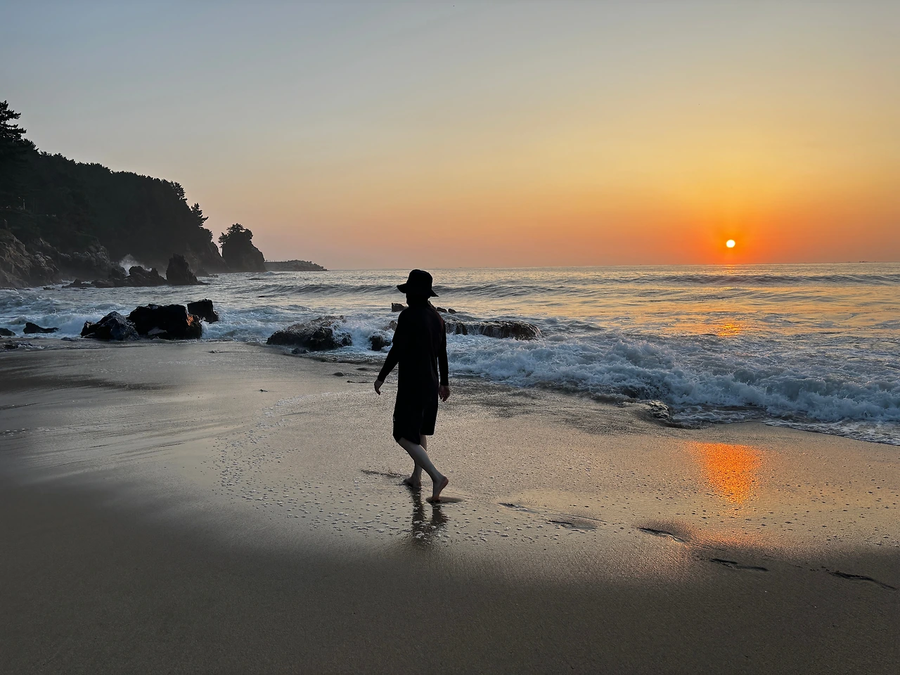 도심 냉천공원에서 찬물이 유입된다고 붙여진 지명, 이곳 한섬에서 맞이하는 화요일 아침은 특별하다. 부드러운 모래 위를 맨발로 걷는 느낌은 자연과 하나가 되는 순간이다. 바람이 전해주는 파도 소리와 새들의 노래는 복잡한 도심 속에서 잊고 지냈던 평온함을 되찾게 한다. 발끝에 닿는 촉감, 그리고 코끝을 간지럽히는 소금기 섞인 바람은 자연의 위대함을 몸소 느끼게 한다.
