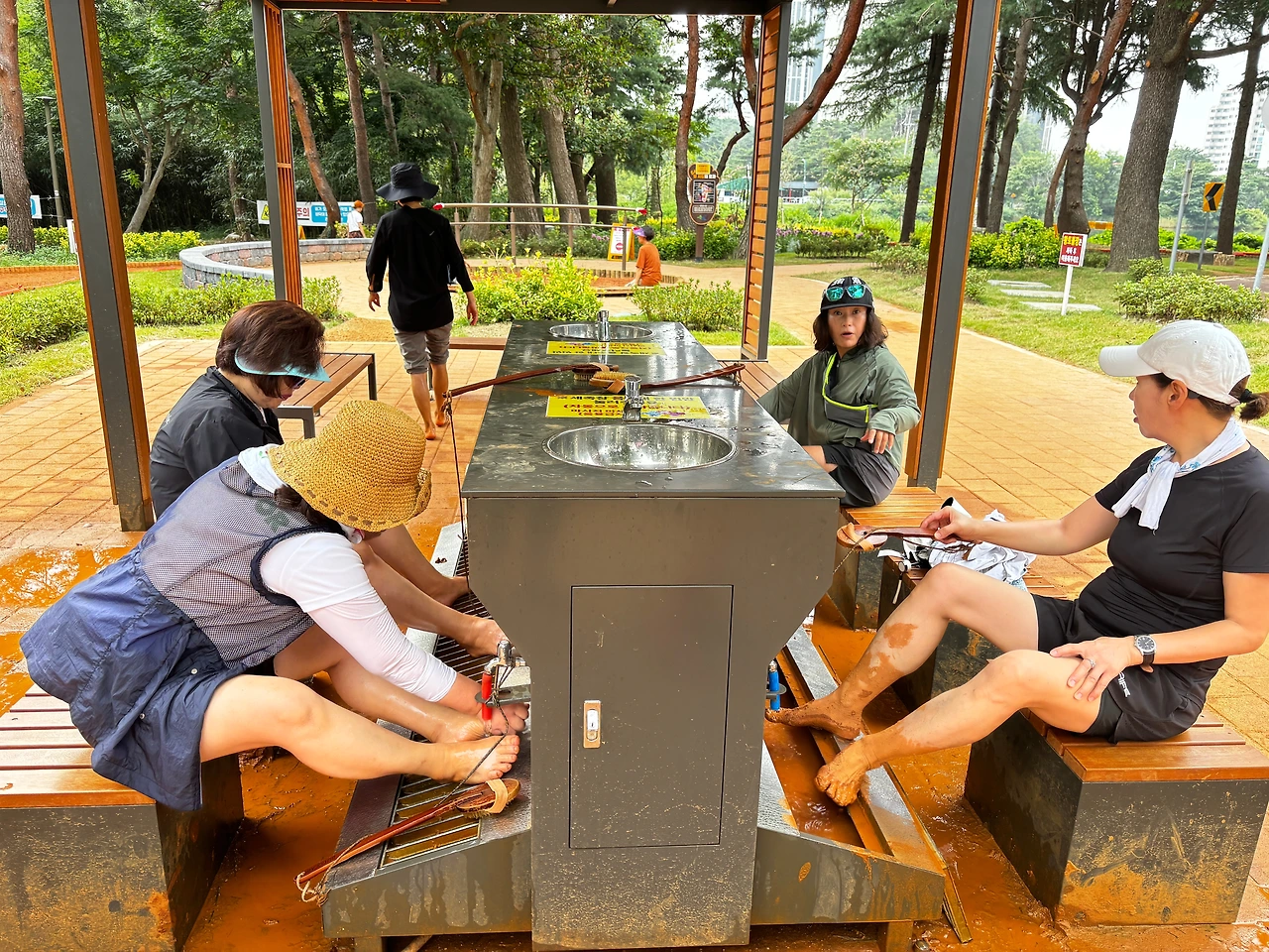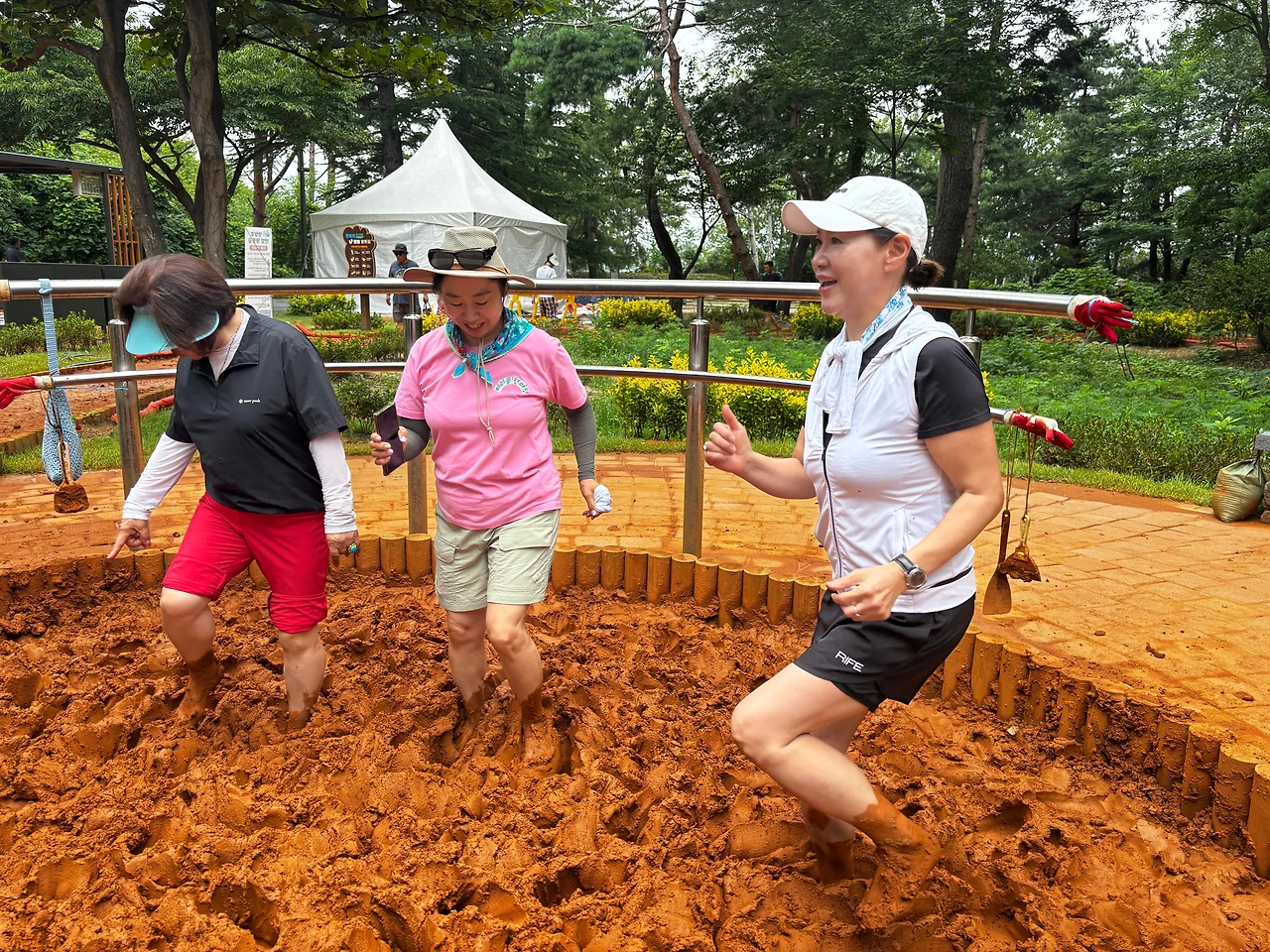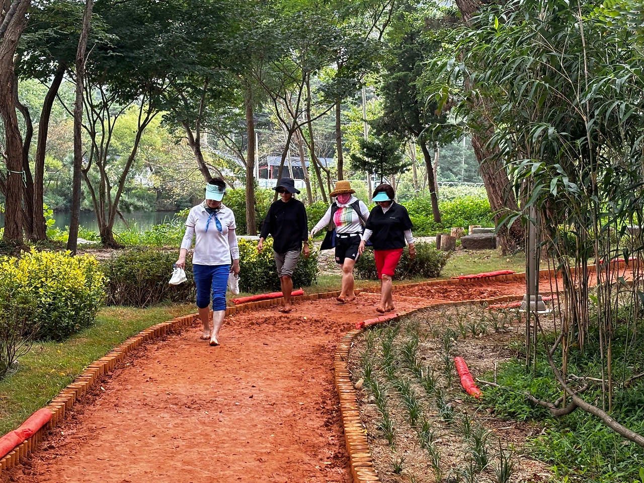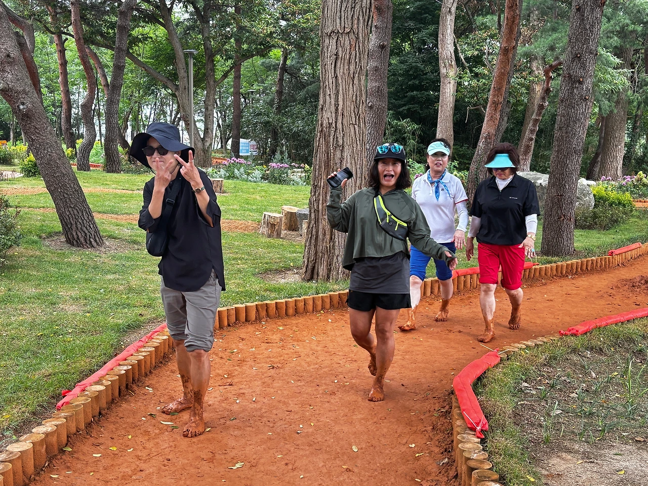 이날 맨발 걷기는 맛집과 명소 방문, 토론 등 다양한 만남으로 진행됐다. 맨발러들이 서로의 발걸음을 맞추며 황톳길을 걸어가는 모습은 그 자체로 하나의 풍경이자, 자연과의 교감을 상징하는 장면이었다. 특히 인상적이었던 것은 다양한 사람들의 모습이었다. 효과에 만족한다며 밝게 미소 지으며 행복하게 걷는 시민들, 책을 읽으며 조용히 사색하는 할머니, 걸음을 멈추고 발에 묻은 진흙을 수시로 제거하고 황토로 만든 볼장을 체험하고 통증을 호소하는 사람들, 그리고 굉음을 울리며 큰 장비를 어깨에 메고 떨어진 낙엽을 정리하는 환경미화 종사자들, 모두가 자신만의 방식으로 자연을 만끽하고 있었다.