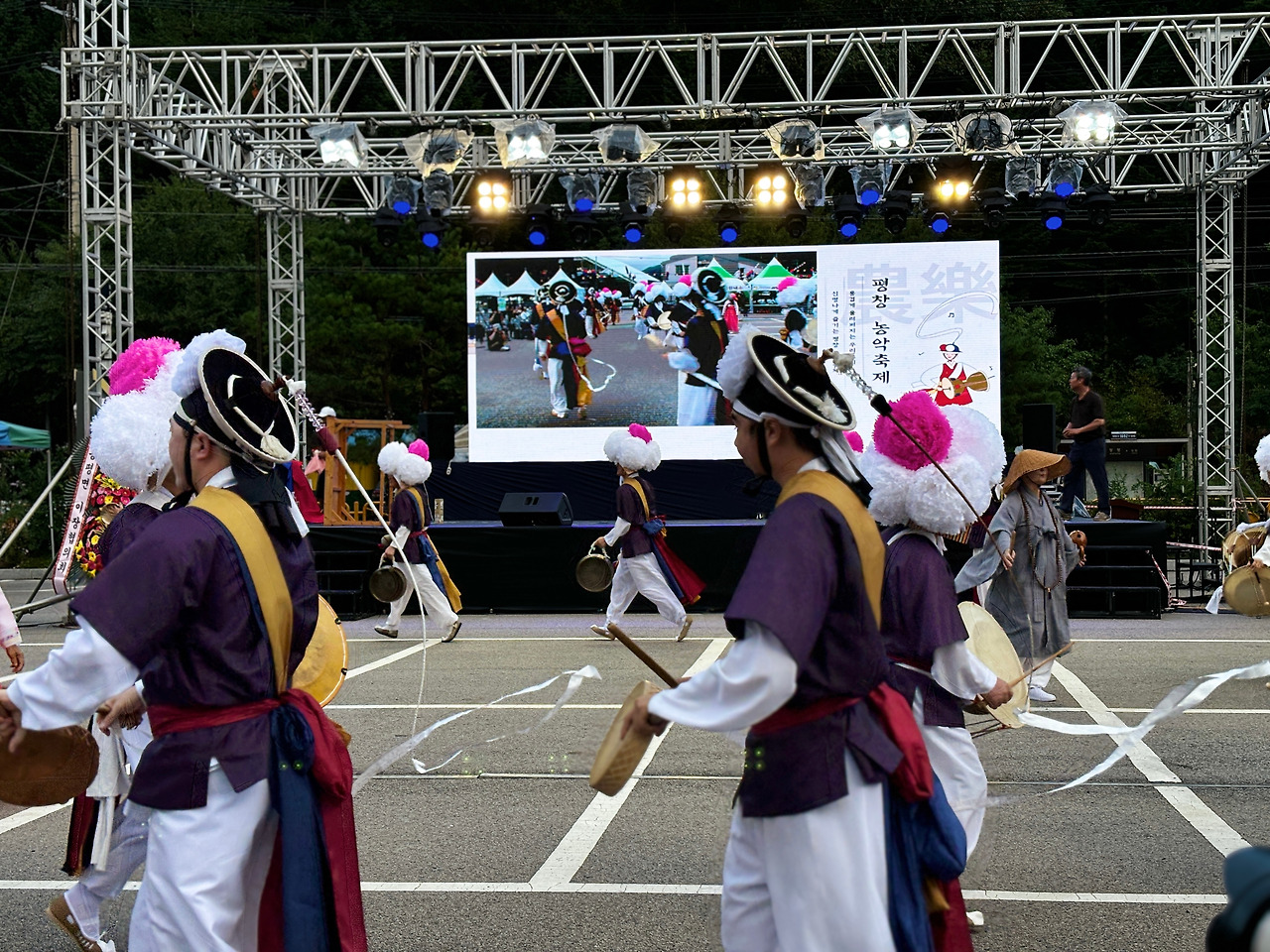 평창농악축제는 평창군의 아름다운 유산, 도 무형문화유산 ‘둔전평농악’ 성장을 위해 4년째 개최하는 농악축제다. 개막공연에서 큰 박수를 받은 서한우 명무의 버꾸춤, 구미 무을농악, 이리농악, 청주농악, 매지농악, 안성 바우덕이 외줄 타기 등 대한민국농악연합회 초청 국내 대표농악과 함께하는 평창은 전통문화로 풍성하다. 현대와 전통이 교차하는 공간에서 농악, 국악, 전통놀이와 같은 민속문화를 되살리며, 신명 나는 농악 소리로 시작된 이 축제는 용평면 장평리의 전통민속상설공연장을 중심으로 4일간 펼쳐지며, 다양한 퍼포먼스와 체험 프로그램으로 축제장을 찾는 주민들의 오감을 사로잡고 있다.