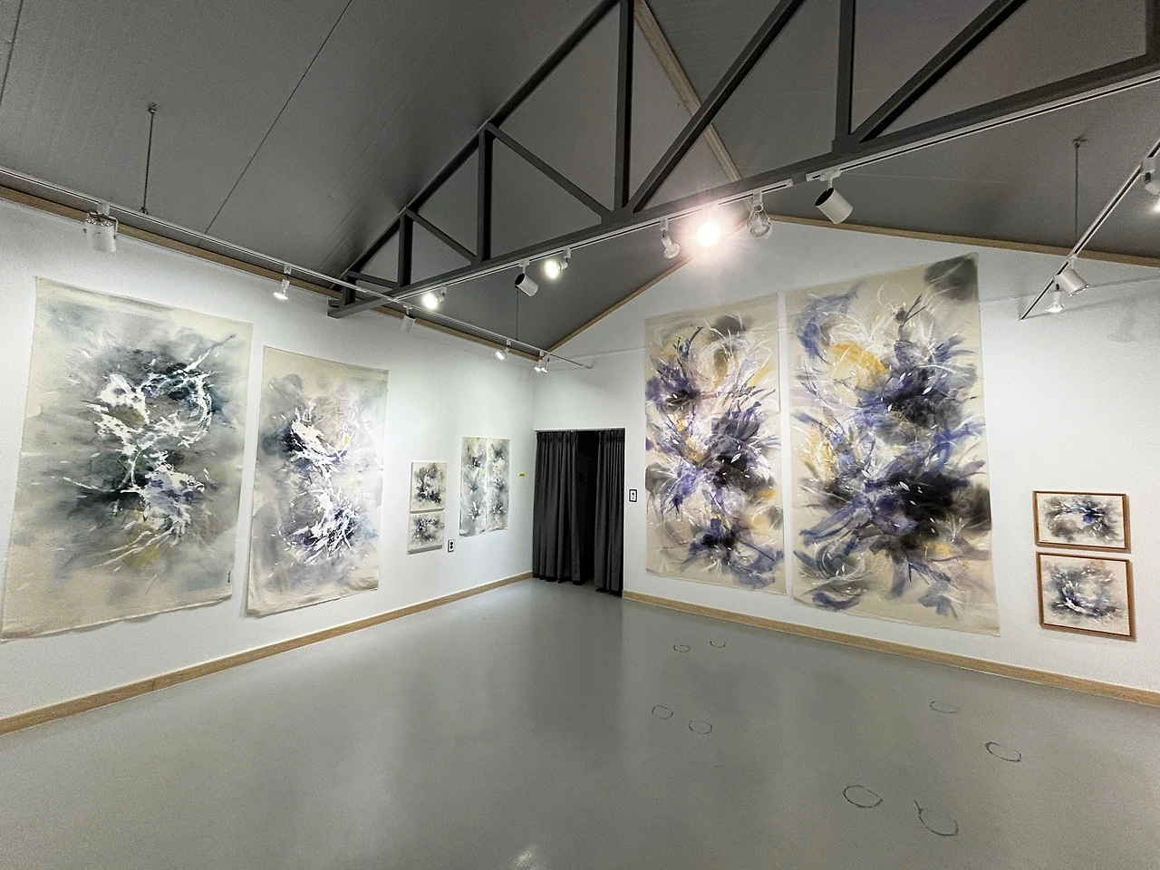 전시장을 한참 돌아보다 나는 작가의 그림에서 공통점을 발견했다. 그림마다 헤엄치듯 달리는 어쩌면 작은 물고기 모양의 무늬다. 온갖 상상을 하다가 작가에게 질문을 던졌다.