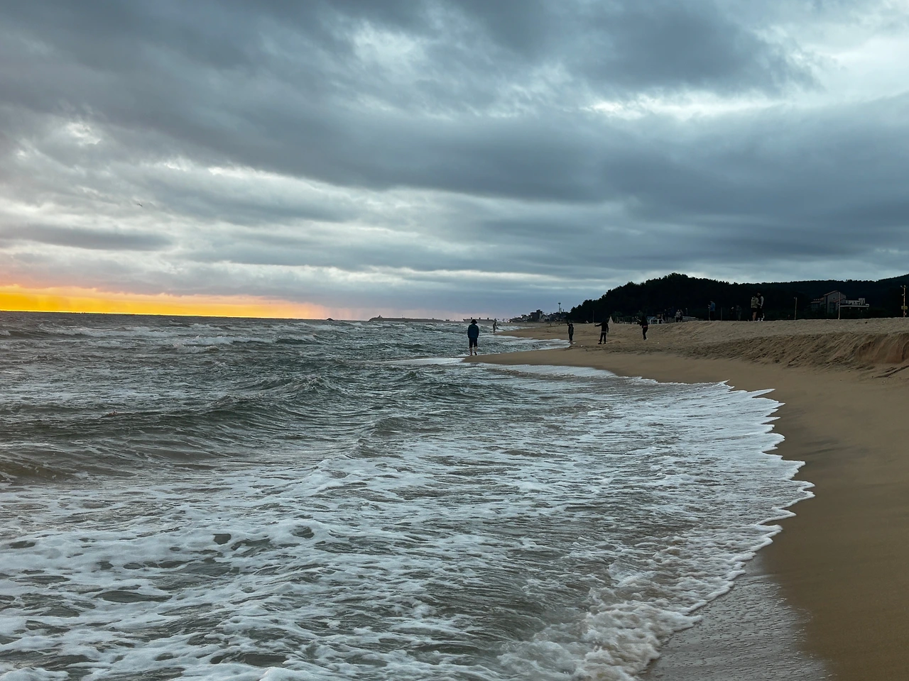 가을비가 촉촉이 내리기 시작할 무렵, 우리는 해변을 따라 대진 방향으로 향했다. 한 시간의 걷기는 마치 물 위를 걸어가는 명상과도 같았다. 가을의 기온은 우리의 걸음을 더욱 가볍게 했고, 맨발로 밟는 모래의 감촉은 자연스러운 발 마사지와도 같아 혈액 순환을 돕는 느낌이 온다. 해변의 모래는 적당히 따뜻하여, 발바닥을 감싸는 모든 순간이 쾌감이었다. 회원 최수진 씨는 ‘촉촉한 백사장, 완만한 파도, 행복한 아침, 오늘은 최고의 걷기다.’라며 ‘모두 잠에서 깨어 모두 해변을 맨발로 걸었으면 좋겠다.‘라고 연신 ‘행복하다’를 반복한다.