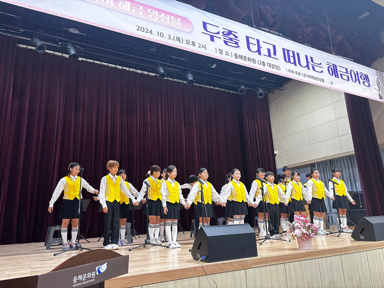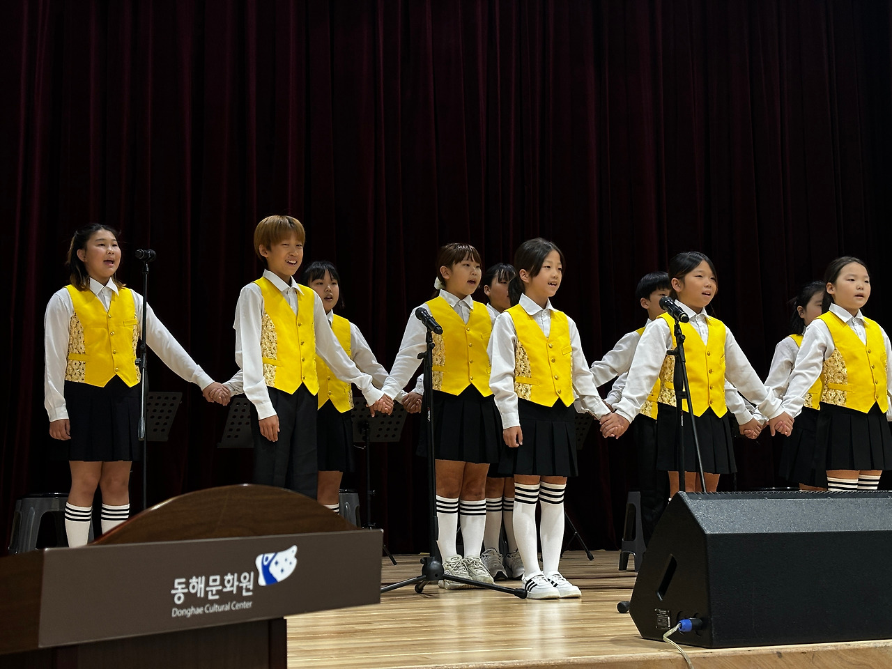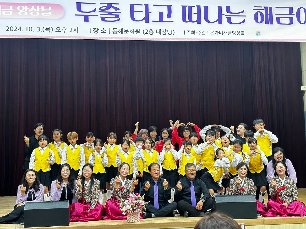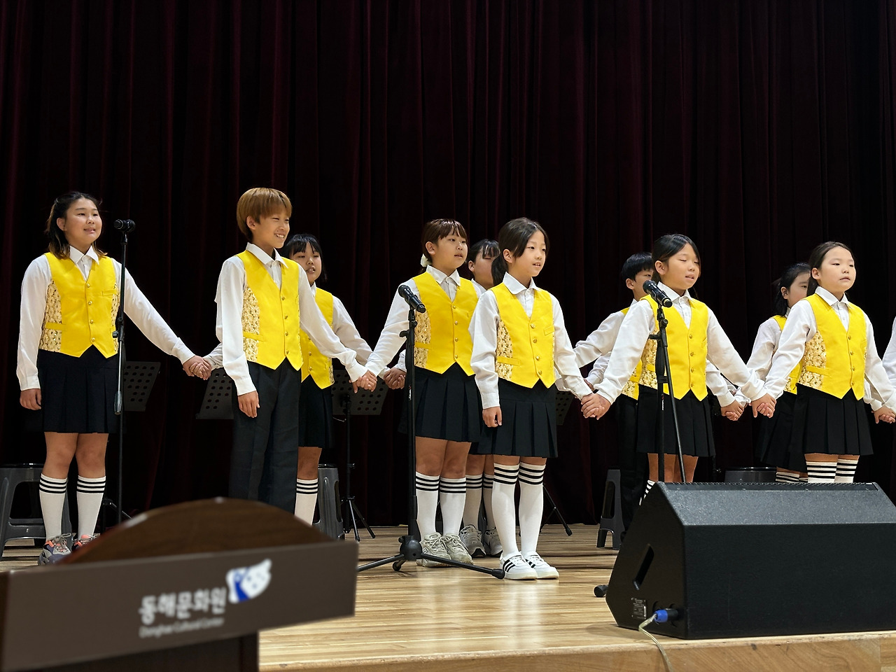 이날 무대는 동해시 드림스타트 소속 어린이 합창단 ‘드림’도 게스트로 참여하여 ‘아름다운 나라와 모두가 꽃이야’ 등을 피아노 반주와 해금반주에 맞춰 열창했다. 이 곡은 아이들의 맑고 순수한 목소리와 해금의 서정적인 선율이 합쳐져, 마치 이상적인 세계를 그리는 화음을 탄생시켰다. 이 아름다운 조화는 미래를 향한 희망과 긍정의 메시지를 전달하는 듯했다.