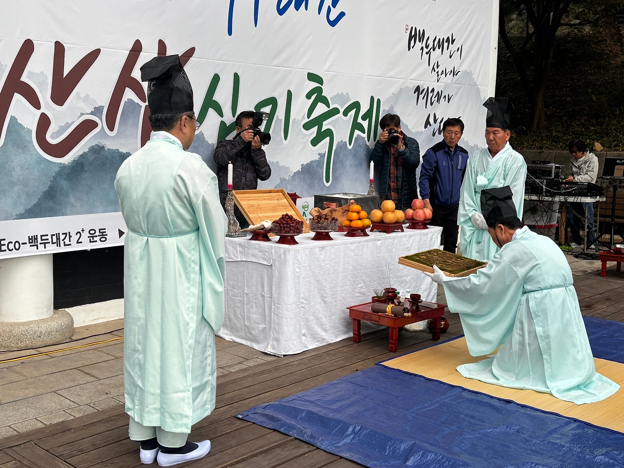 백두대간, 우리 민족의 뼈대를 이루는 산맥의 중심에, 생명의 씨앗을 심는 날이다. 여기는 산삼이 자라는 대표적 서식지의 한 곳이자 백두대간 생태복원의 상징인 두타산, 청옥산, 고적대의 무릉계 초입이다. 오랜 시간 동안 사람의 손길을 빌려 이곳에 생명의 뿌리를 내려준 축제가 올해도 어김없이 찾아온 것이다. 축제는 1부 산신제, 2부 개회식, 3부 산삼심기 체험으로 진행됐다.