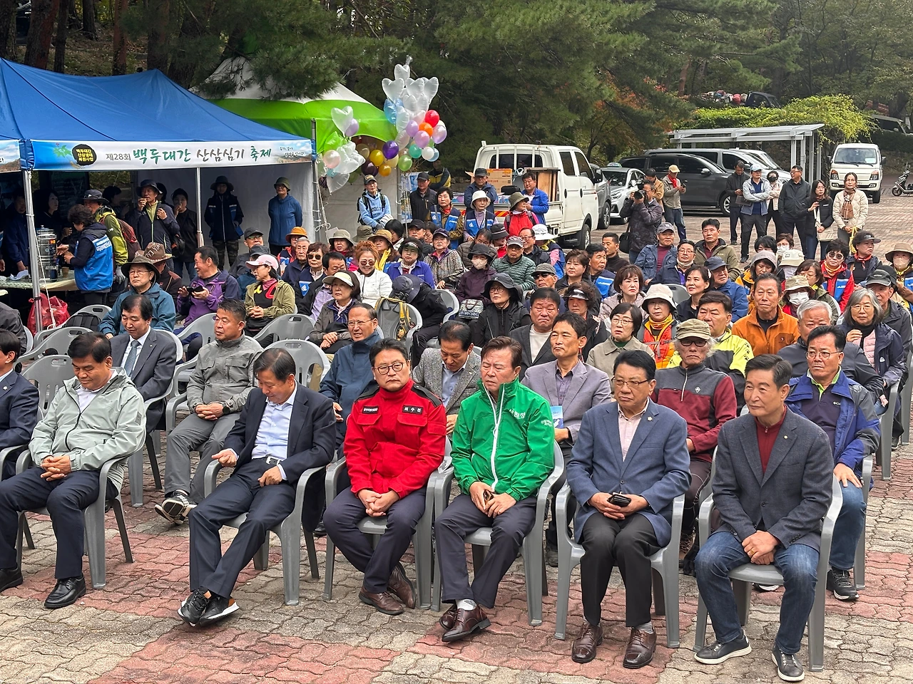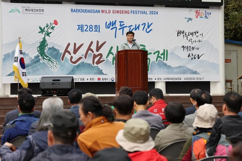 주말 아침, 깊은 산내음과 단풍 절정의 명품숲 두타산 무릉계 광장에서 백두대간보전회가 주최하는 제28회 백두대간 산삼심기 축제가 열렸다.