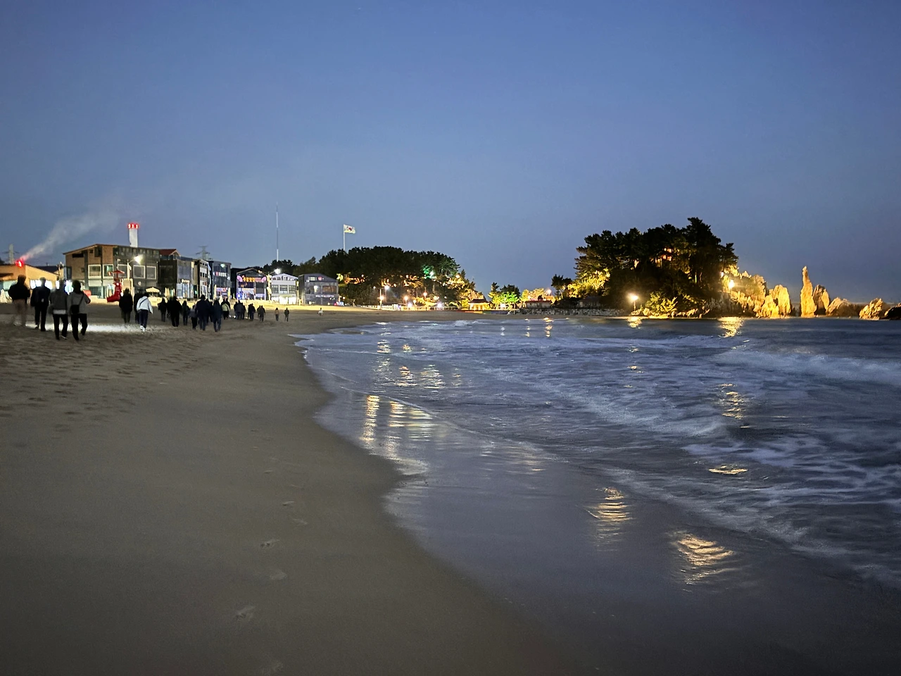 동해 추암 해변은 새벽 공기가 깔리면, 여행자들과 시민들은 맨발로 해변을 걸으며 일출을 기다린다. 예전 같으면 대부분 신발을 신고 촛대바위에 오르거나 해변가에 모여 일출을 감상했다. 관광객들이 이제는 해변의 모래와 파도에 발을 맡기며 자연을 몸으로 느끼는 새로운 여행 방식을 선택하고 있다. 오늘도 버스 세 대가 도착해 100여 명의 관광객이 해변에 내려 단체로 맨발 걷기를 시작했다. 해변을 따라 맨발로 걷고 일출을 맞이하는 이 일정은 이제 관광의 중요한 트렌드가 되고 있고 여행상품의 가능성과 필자가 언젠가 글로 공개한 바 있는 인구소멸 위험도시 동해의 관계인구 늘리기 가능성이 현실화되는 현장이다.