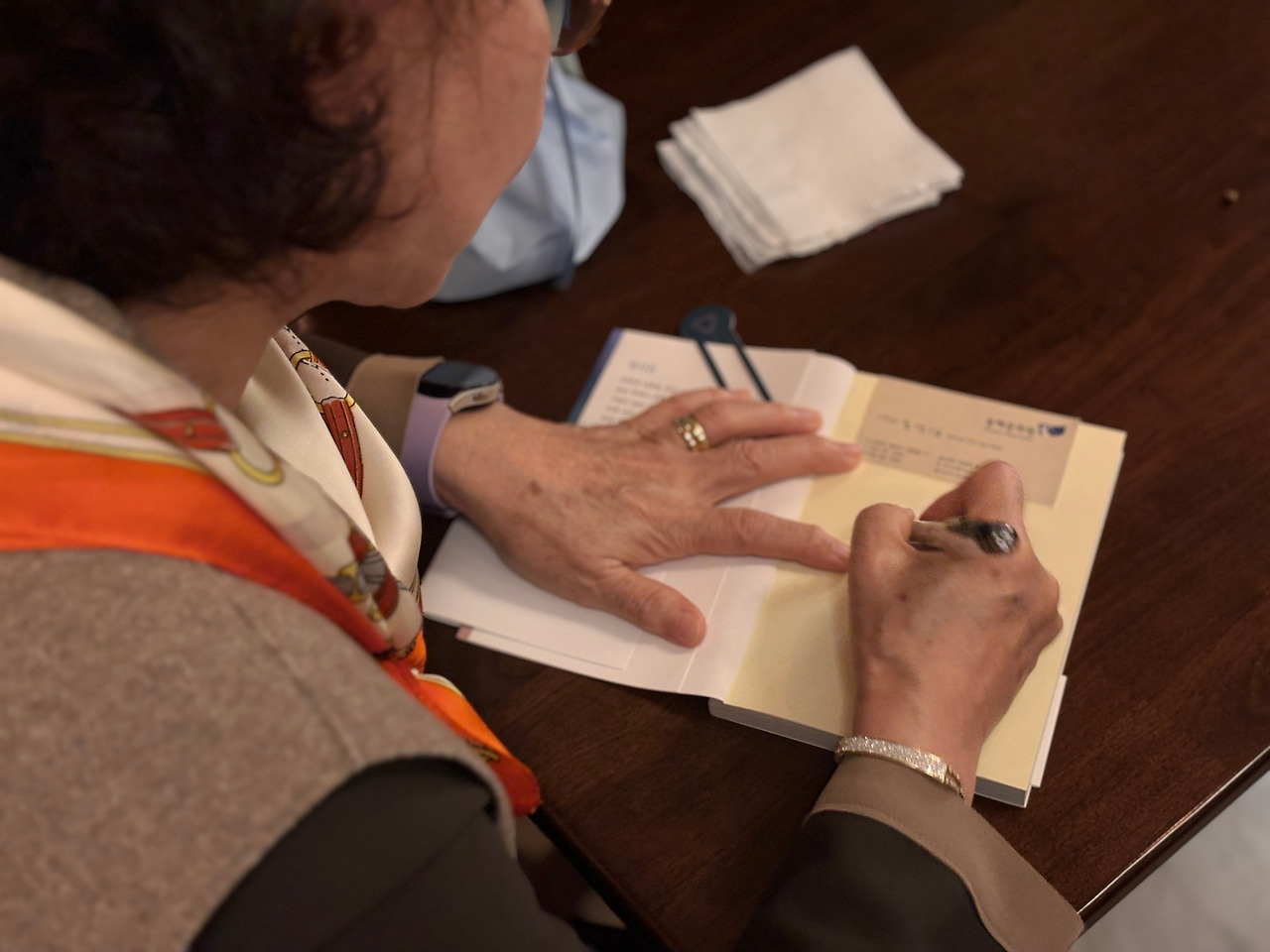 이날 북토크는 작가의 지인과 지역문인, 의원, 시민 등 30여 명이 참석했다. 작가 소개와 책 소개, 질의응답, 기념촬영, 사인회 순으로 차분히 진행됐다. 본명은 최지은이지만 미국생활 관련 남편의 성을 따라 전지은 작가로 40년 이상 부르고 있다. 작가는 이번 북토크를 통해 새 에세이집 “오롯한 나의 바다”를 소개하며, 부모님과의 관계, 특히 어머니와의 깊은 유대와 그 속에서 느낀 삶의 본질을 나누었다.