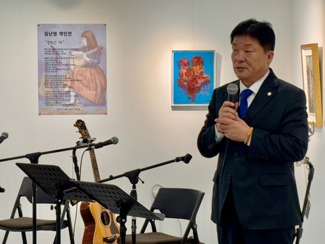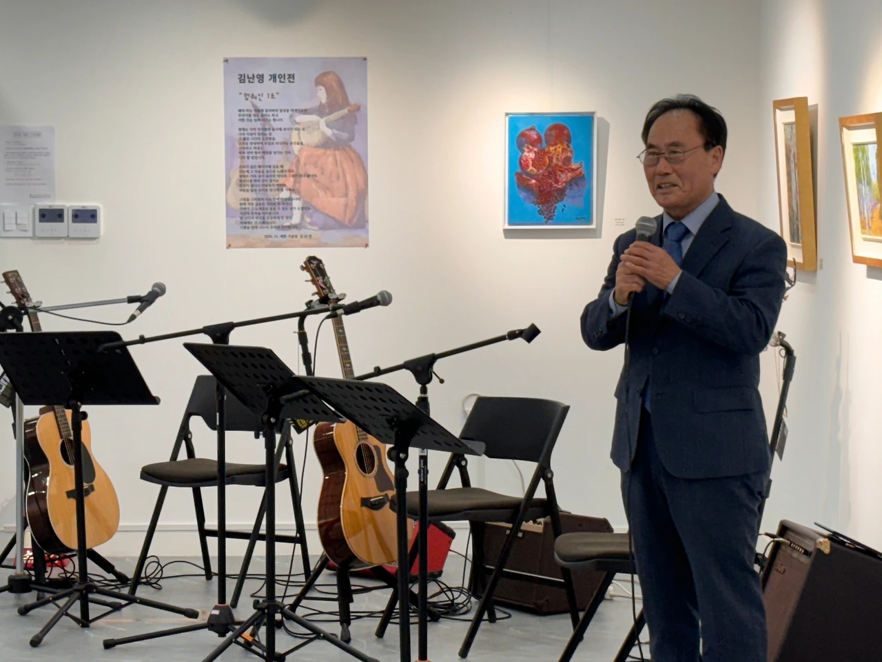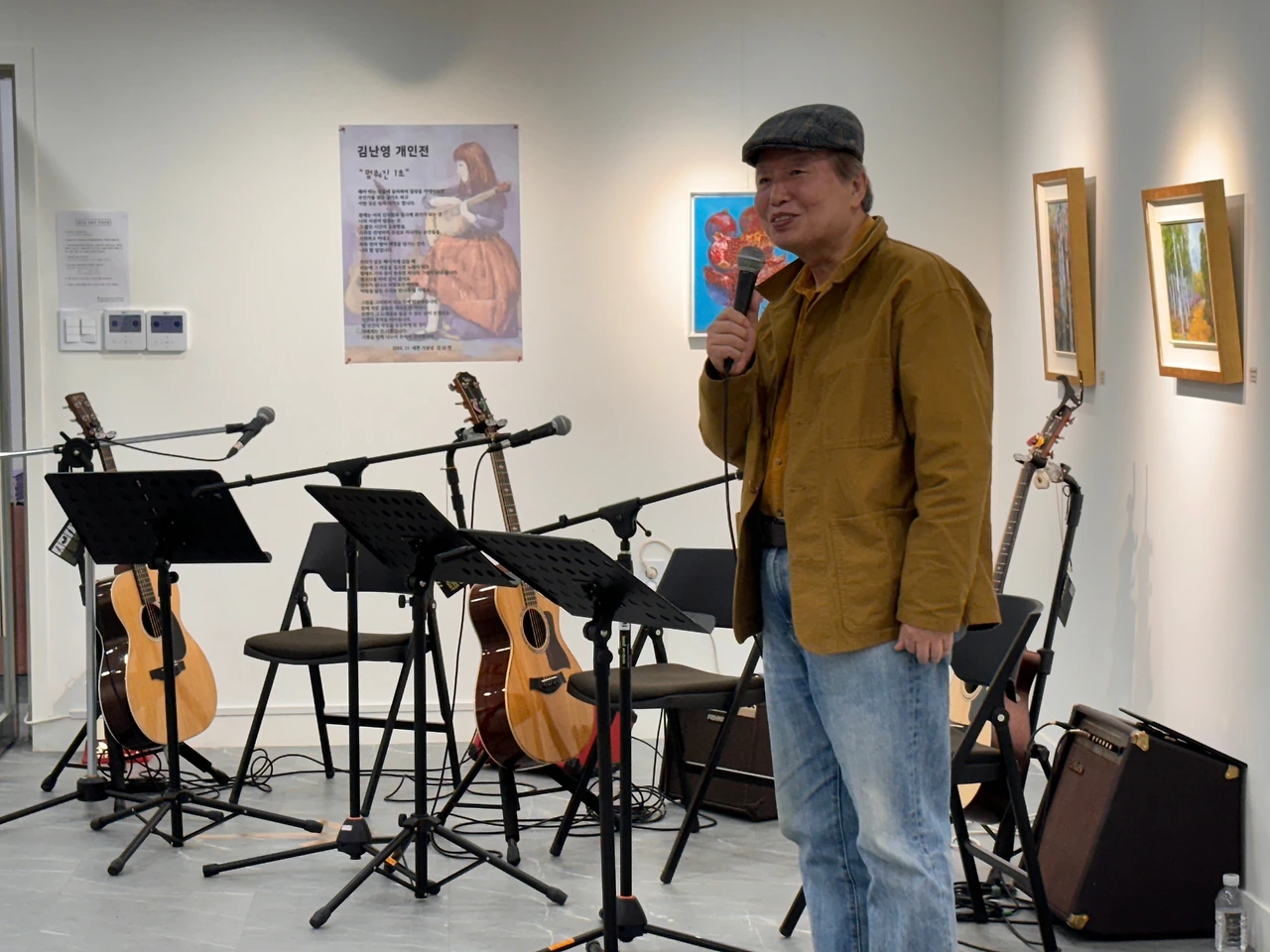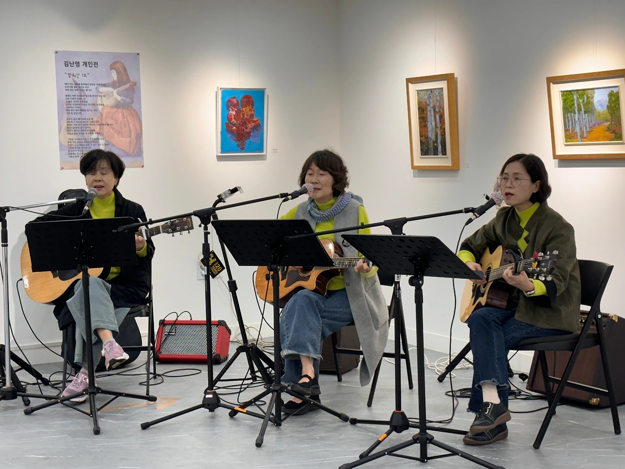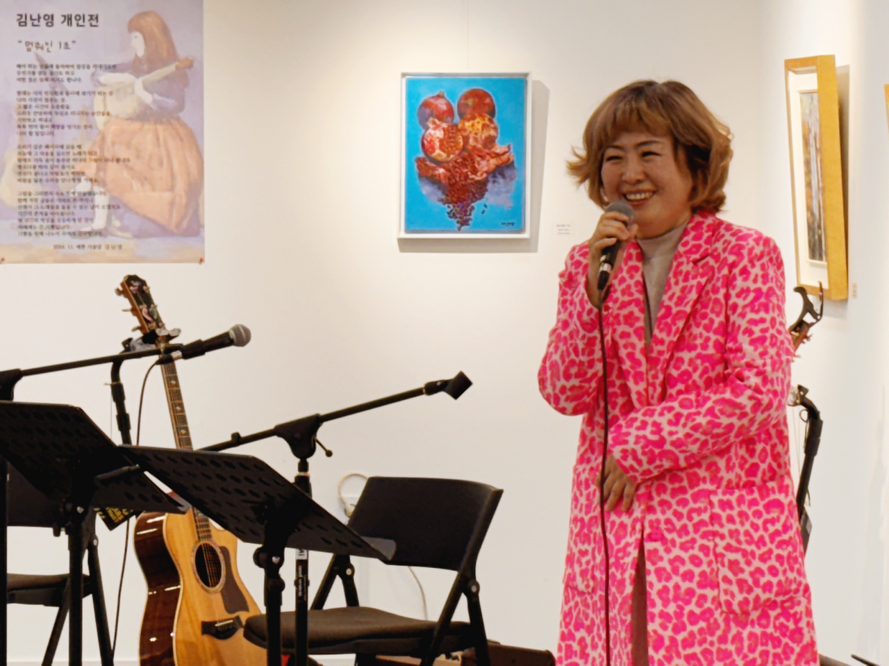 김난영 작가는 가수이자 화가로, 통기타 동아리 ‘F#’ 멤버로 활동하면서 솔로 성인가요 가수로도 활동하는 등 다방면에서 문화예술활동을 펼치고 있는 예술가다. 이번 전시는 그림으로도 나를 표현할 수 있다는 생각에 도전했다. 작품의 소재는 문득 스치는 찰나의 기억들을 작품으로 선보였다. 그녀의 예술적 깊이와 다재다능함을 엿볼 수 있는 특별한 기회로, 관객들에게 그림과 음악이 어우러진 색다른 감동을 전해주고 있다.