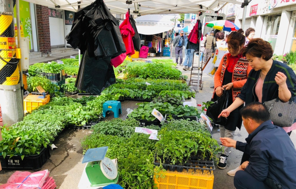 3일과 8일로 끝나는 날 열리는 요즘 ‘북평민속오일장은 봄을 알리는 ‘모종장’으로 알록달록 꽃밭이다.