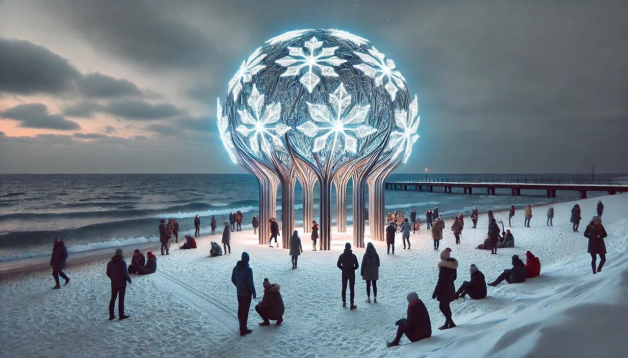 전통적인 조각이나 벽화 같은 <고정된 공공예술의 개념은 더 이상 유효하지 않을 것>입니다. 미래의 공공예술은 진화하는 공간으로서의 역할을 하며, <시간에 따라 그 형태와 메시지가 변화>하는 <변형적 예술>로 발전할 수 있습니다. 예를 들어, <환경적 요소나 인간의 상호작용>에 따 라 작품이 물리적으로 변화하거나, <생체 데이터(예: 사람들의 심박수, 움직임 등)를 기반>으로 작품이 반응하며 진화하는 형태의 공공예술이 가능할 수 있습니다. 이처럼 유기적이고 비고정 적인 예술은 도시와 시민의 관계를 끊임없이 재구성하게 할 것입니다